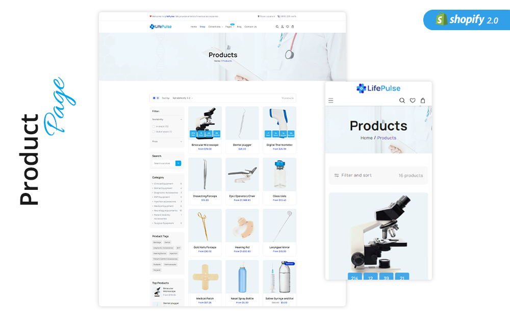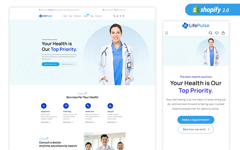 LifePulse, a cutting-edge, robust and visually stunning Shopify theme to empower your health-care and medical online-stores for selling medical supplies, surgical equipments and well-being products. This versatile and feature-rich template is meticulously crafted to cater to the unique needs of the healthcare industry, providing an all-in-one solution to establish a trustworthy and informative digital presence.
