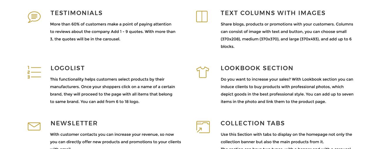 Our templates do not include any additional scripts. Newsletter subscriptions, search fields, forums, image galleries (in HTML versions of products) are inactive. Basic scripts can be easily added to a Interior Design Blog Shopify theme by our Web Studio team. If you are not sure that the element you're interested in is active please contact our Support Chat for clarification.