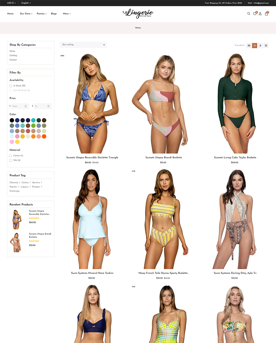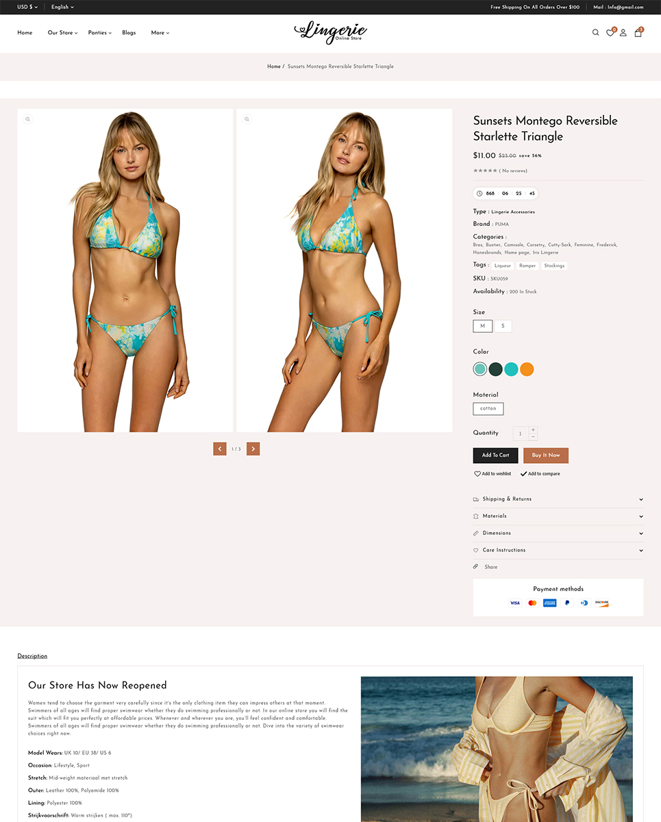 Lingerie - Lingerie, Ladies Wear, Swimwear & Bikini Store Shopify Theme comes with + RTL + Responsive + 2 Unique Product detail page + Product notification + Wishlist & compare and many more features provide you with a great advantage to present your products to the viewers. Moreover, there is no limitation for the modification. We understand how important it is to have a website that speaks to your customer’s interests and reflects your business’s personality. With the Lingerie beauty store, you can be sure that your website will not only look good but also be informative and easy to use. The theme is Developer Friendly theme so, if you have coding & programming skills, you can easily modify codes and add your own codes to the theme.
