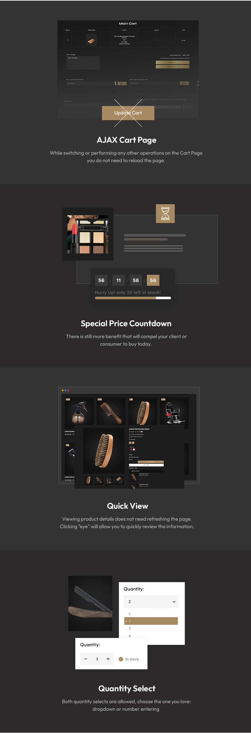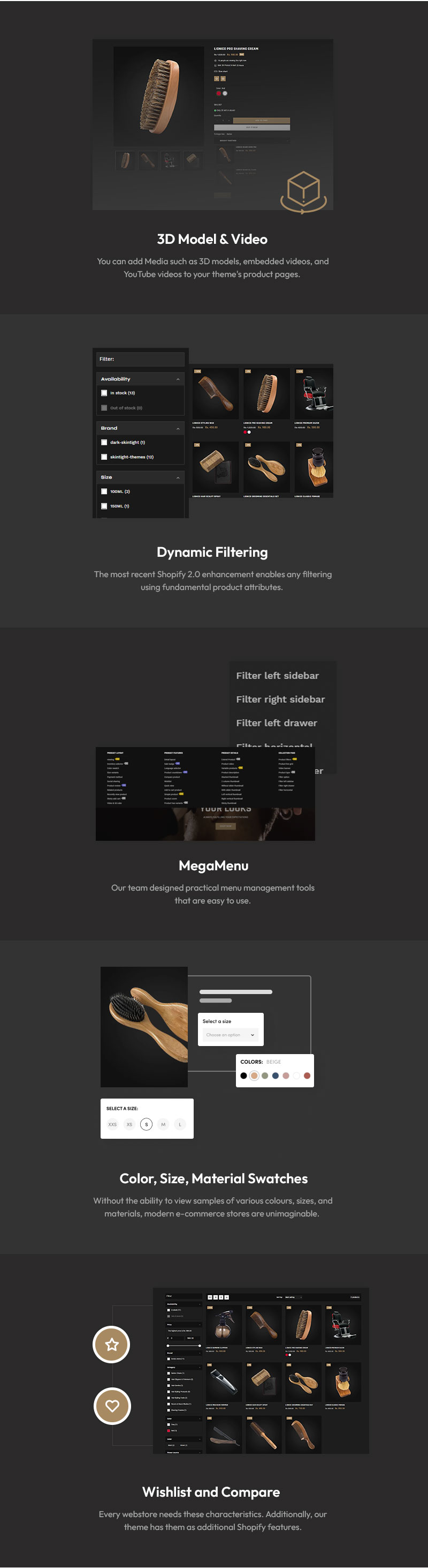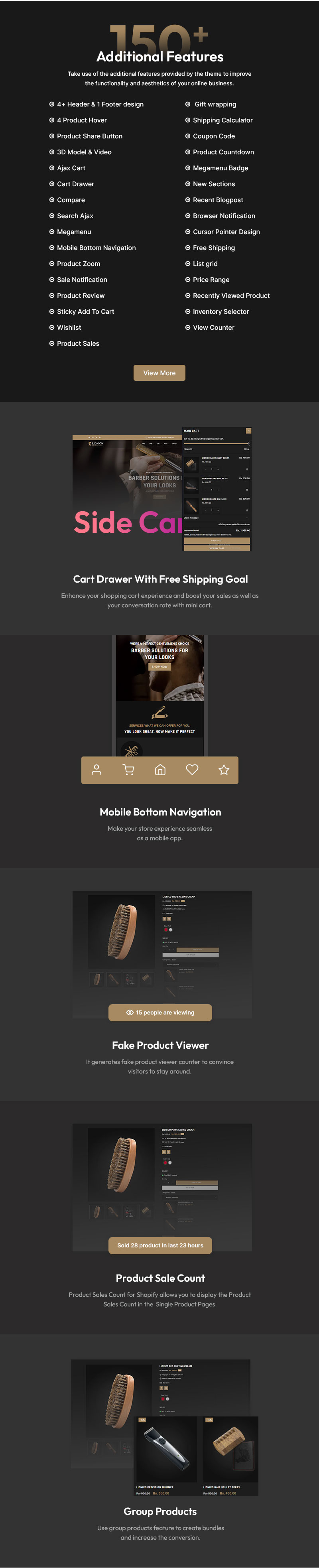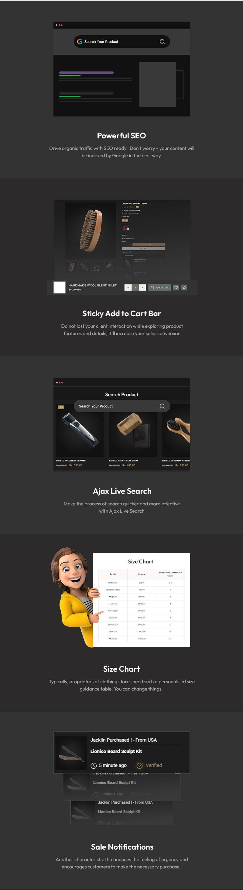 Customization is effortless with Lionico’s powerful drag-and-drop editor, allowing you to refine layouts, typography, and color schemes to align with your brand identity. The advanced filtering system lets customers browse by grooming needs, hair type, product category, or brand preference, ensuring an intuitive shopping journey. Each product page is designed for maximum engagement, featuring detailed descriptions, usage guides, high-quality images, and customer reviews.