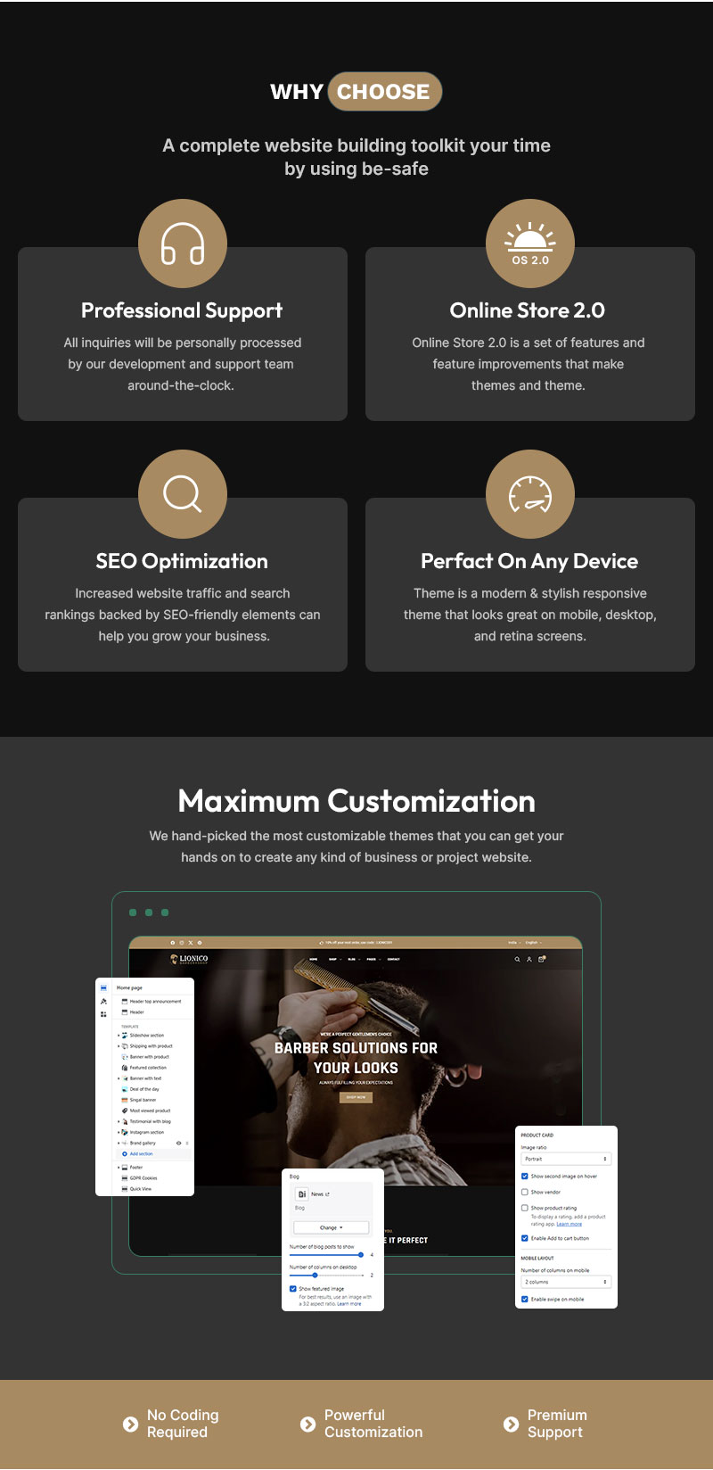 Perfect for high-end barbershops, premium grooming brands, and men’s hair care retailers, Lionico blends rugged sophistication, cutting-edge eCommerce features, and conversion-focused design to create a powerful online grooming store.