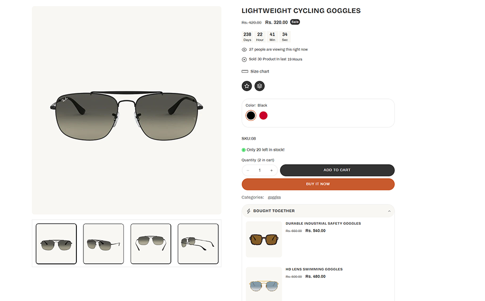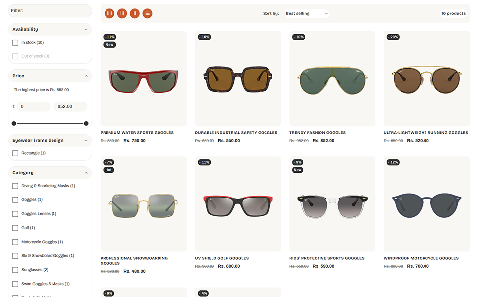 Customization is effortless with LumeLens’s drag-and-drop builder, allowing you to adjust colors, fonts, and layouts to match your brand’s identity. The advanced filtering system enables customers to browse by frame shape, lens type, material, and style, ensuring a smooth shopping journey. Each product page is optimized for maximum engagement and sales, featuring detailed descriptions, lens benefits, size guides, customer reviews, and virtual try-on integrations.