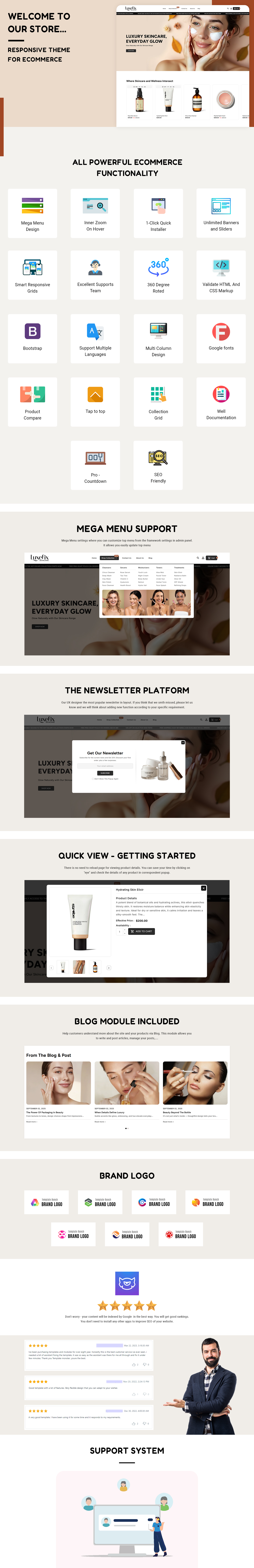 Designed for performance, Luxefix includes a working contact form with Ajax for quick customer inquiries, lightning-fast loading times, and a seamless user experience. The ready-to-use homepages make launching your store effortless, while CSS3 table-less design keeps the layout clean and efficient. With free updates, well-documented files, and 24/7 support, you’re never left on your own.