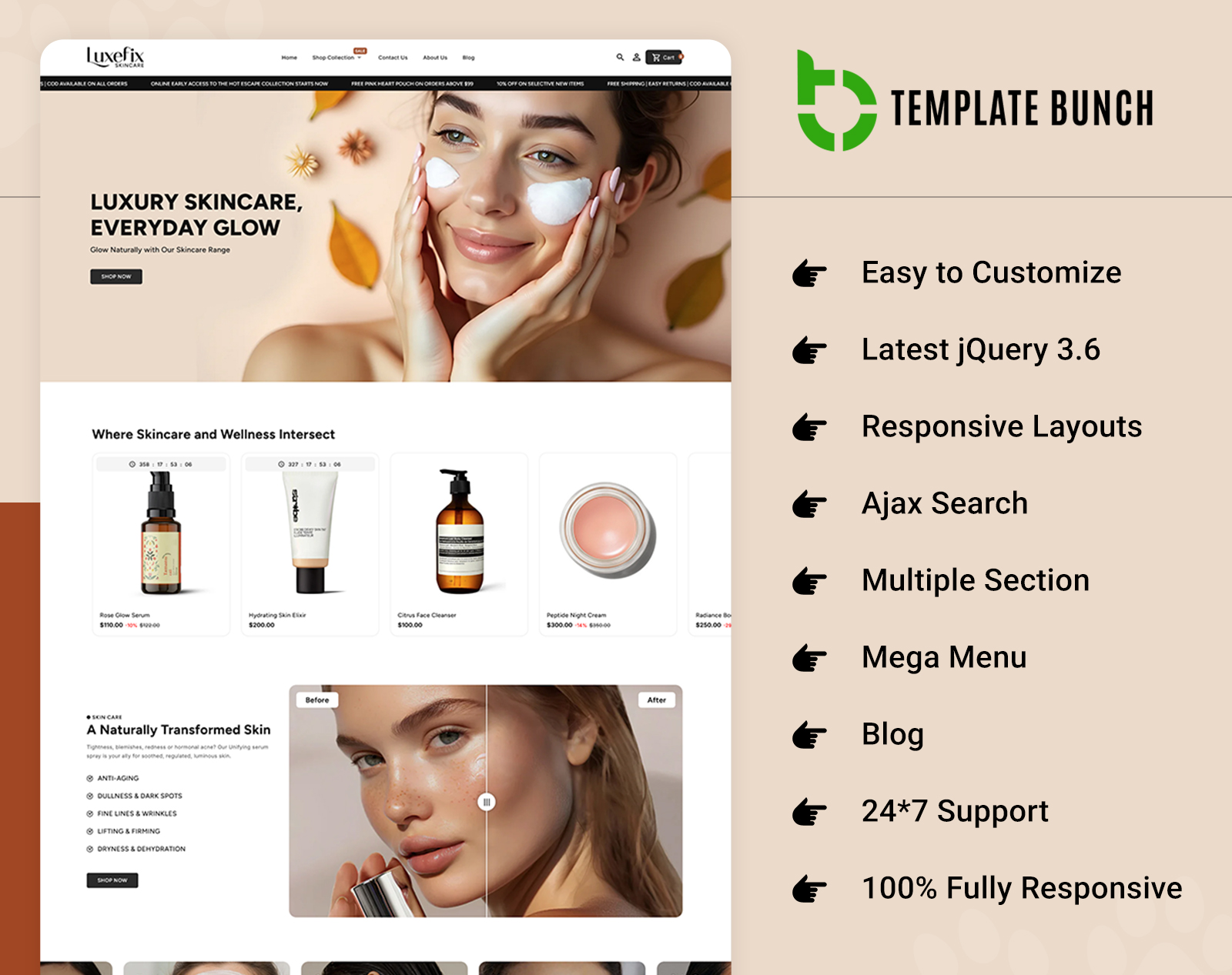 Luxefix - Beauty & Skincare Responsive Shopify Theme for eCommerce - Description