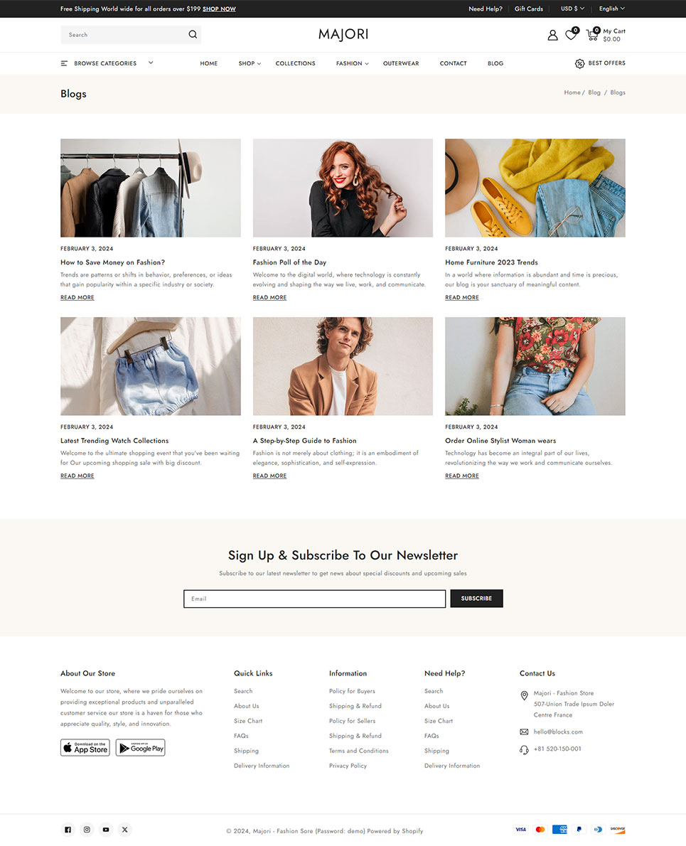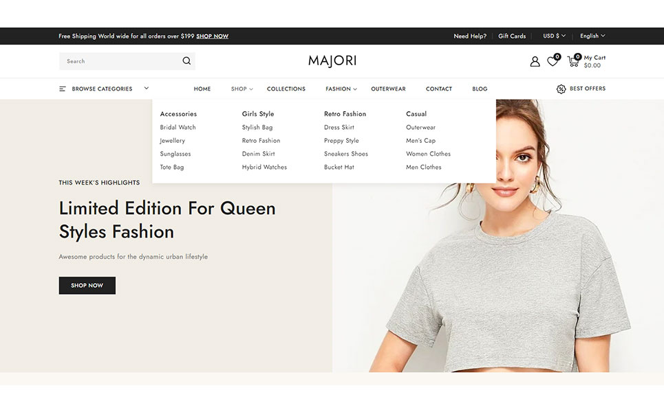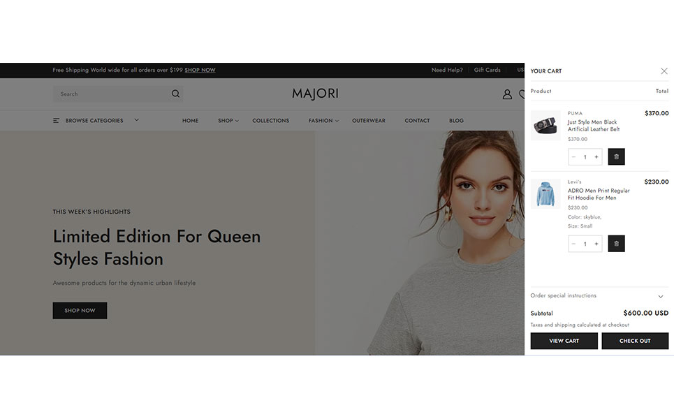 Welcome to Majori, your ultimate destination for cutting-edge fashion and stylish apparel. We are excited to present our Majori Shopify 2.0 Responsive Theme, a dynamic and innovative platform designed to enhance your online shopping experience. With our focus on fashion and apparel, we have meticulously crafted this theme to bring you a seamless, user-friendly, and immersive journey through the world of style.