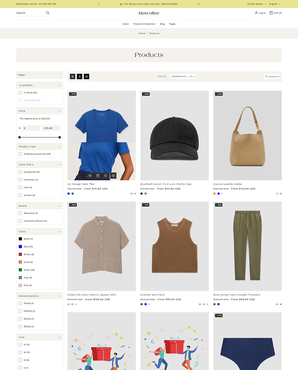 Built with SEO best practices in mind, Masculine ensures clean code, fast loading speeds, and mobile optimization, all of which are crucial for improving your search engine rankings. The theme offers rich product display features, including high-quality images, detailed product descriptions, and customer reviews. It supports a wide range of product types, from clothing and accessories to grooming products, enhancing the visual appeal of your inventory. Navigating through your store is intuitive, with mega menu support and smart product search and filtering options, making it easy for customers to find exactly what they are looking for.