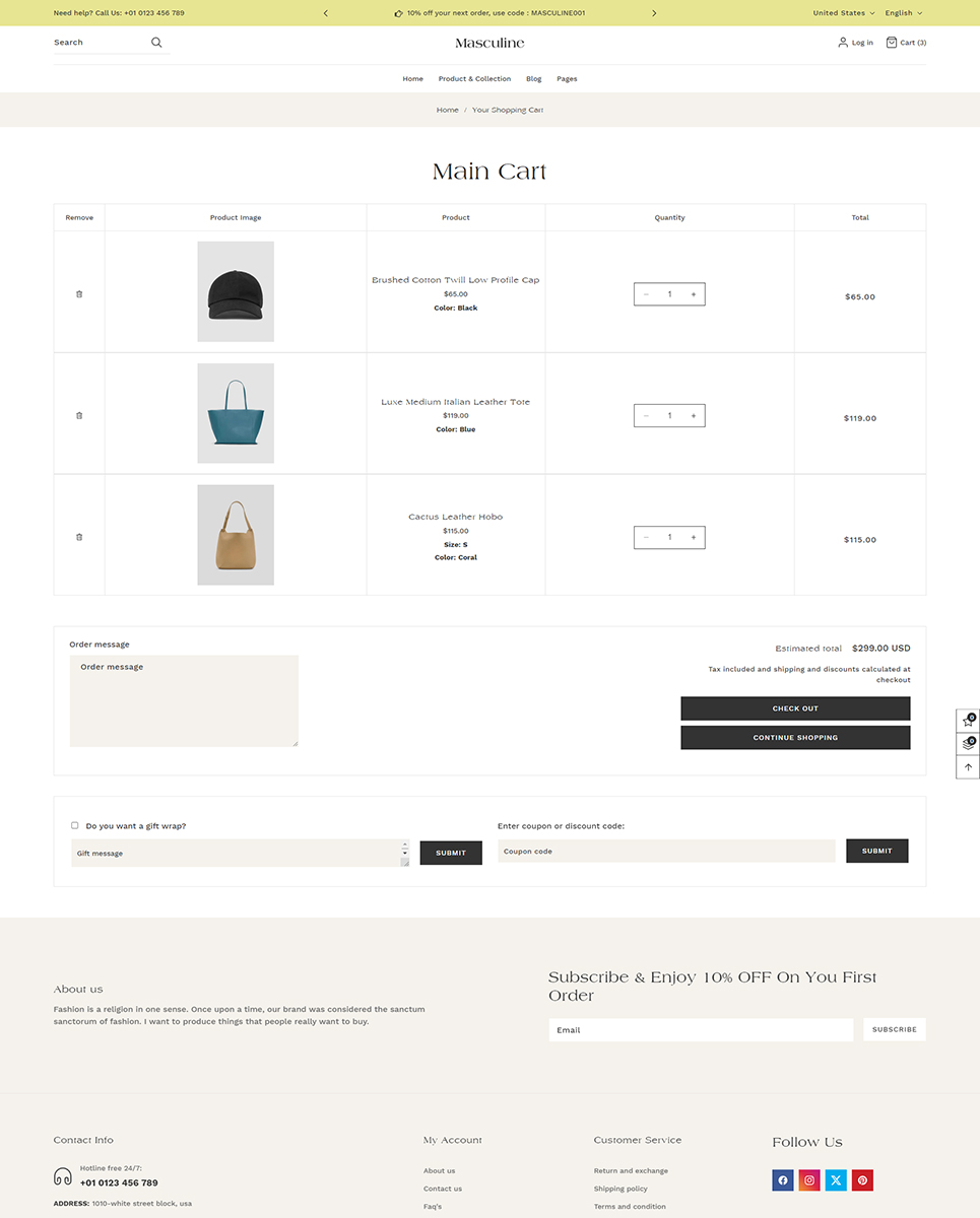 Reaching a global audience is simplified with Masculine's multilingual and multi-currency support, allowing you to cater to international customers seamlessly. This theme is ideal for men's fashion stores, offering customizable layouts with multiple home page designs, detailed product pages featuring zoom-in capabilities, related products, and customer reviews. User-friendly contact pages integrate Google Maps for easy store location discovery. Masculine is built with modern web technologies such as HTML5, CSS3, and Bootstrap, ensuring a robust and reliable website. The theme is cross-browser compatible, functioning smoothly on all major browsers including Chrome, Firefox, Safari, and Edge.