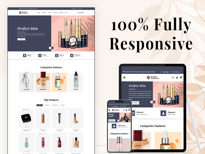 The Matrix Cosmetic theme is a powerful, feature-rich solution for your eCommerce business. It ensures flawless performance by displaying perfectly across all modern browsers and devices, providing a seamless experience for your customers no matter where they shop.