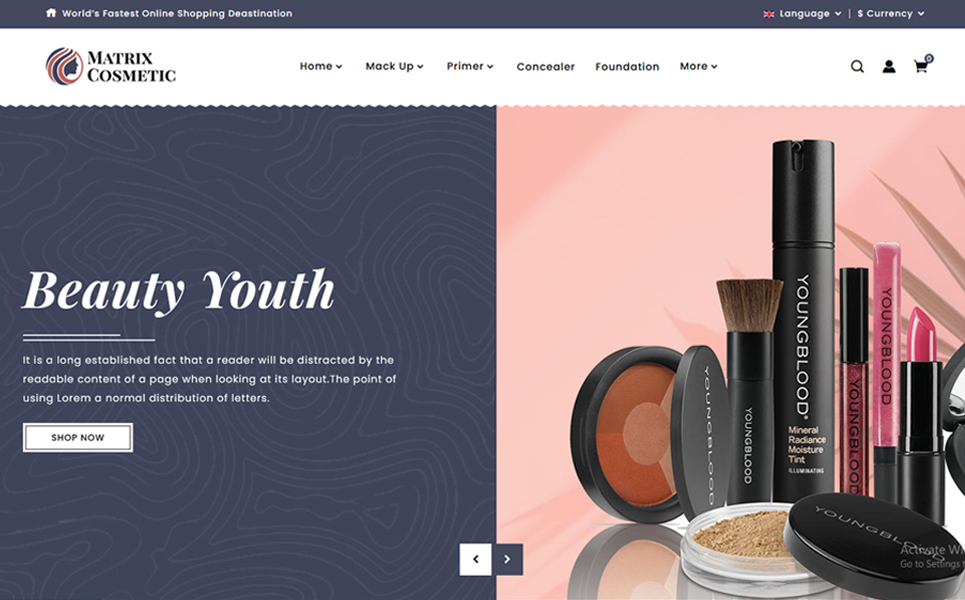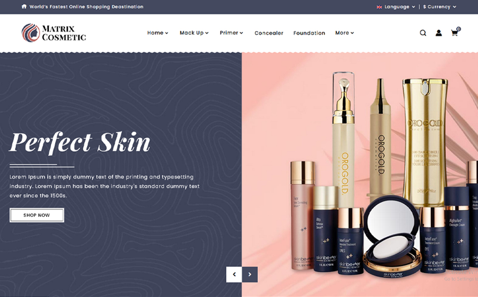 Matrix Cosmetic Shopify Themes and Website Templates for eCommerce Website Design