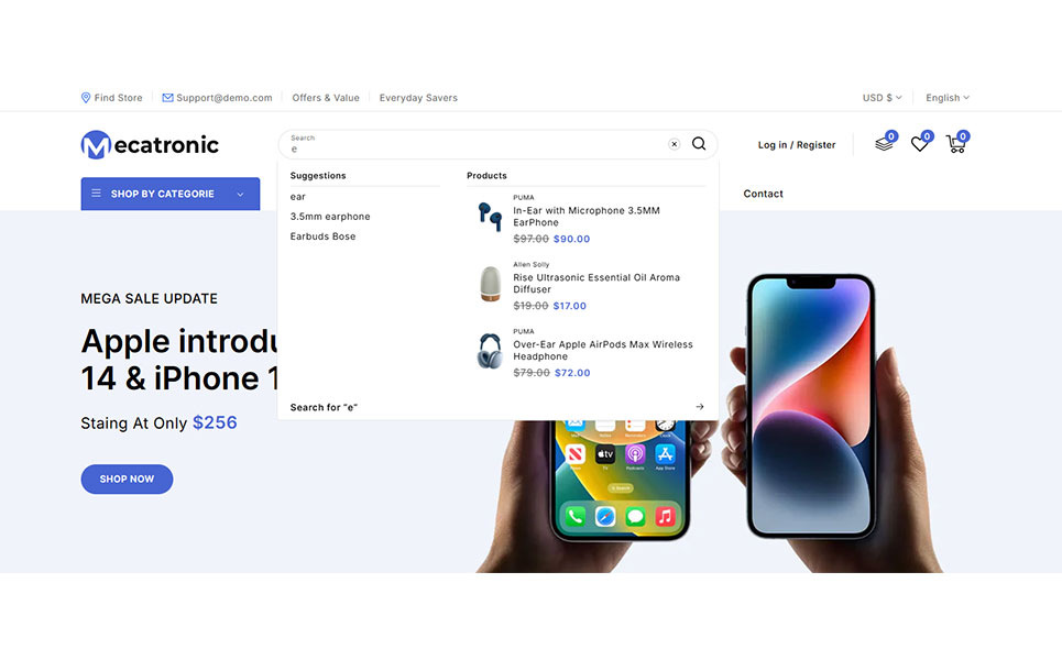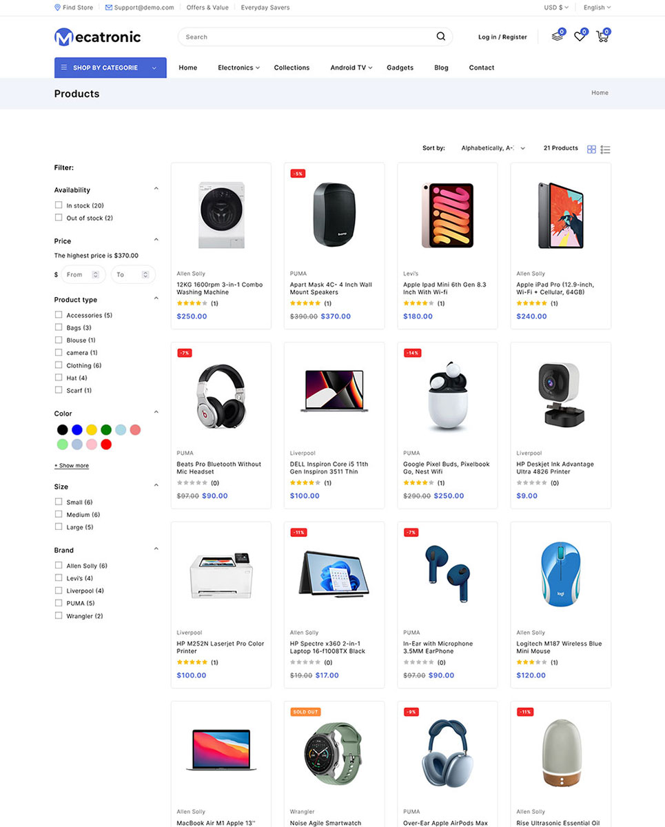 The vertical menu design ensures a streamlined navigation structure, making it easy for customers to browse through extensive product categories without confusion. This feature is especially useful for stores with diverse product offerings. Mecatronic’s advanced filtering options allow customers to refine their search using multiple parameters, ensuring they find their desired products quickly and efficiently.