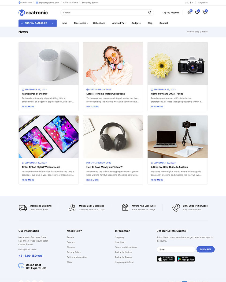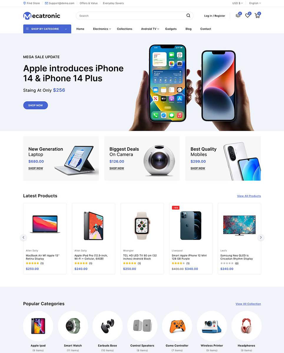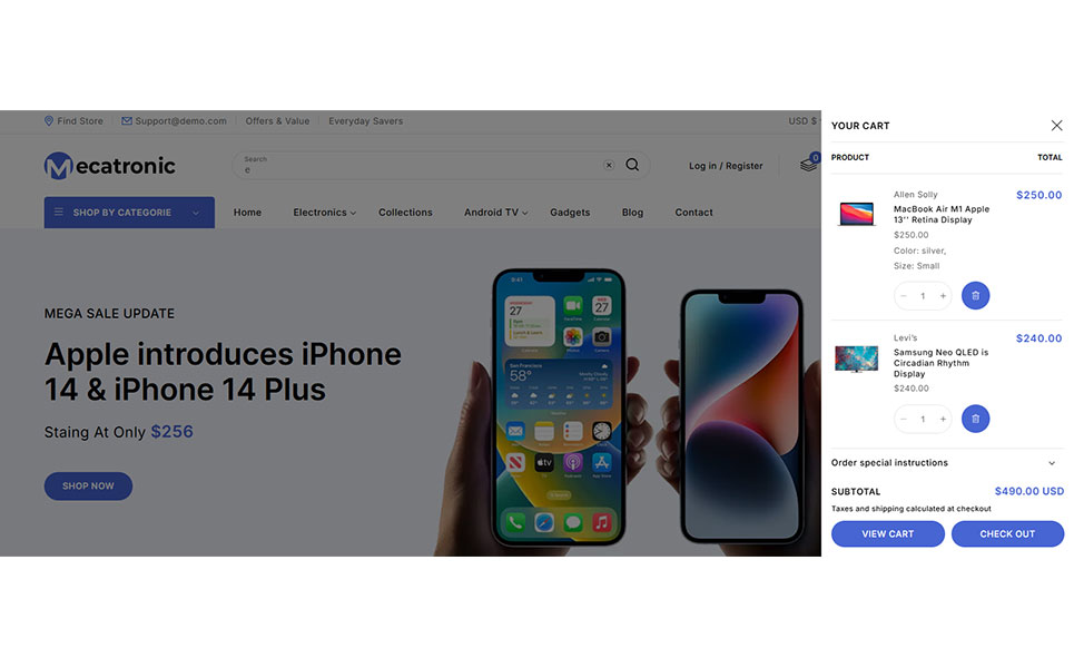 Mecatronic is a cutting-edge Shopify 2.0 theme crafted specifically for electronics and smart gadget stores. Designed with the latest Shopify 2.0 architecture, this theme offers robust functionality, an intuitive interface, and seamless adaptability for modern online businesses. Whether you're selling tech gadgets, home electronics, or innovative smart devices, Mecatronic delivers an unmatched shopping experience for your customers.