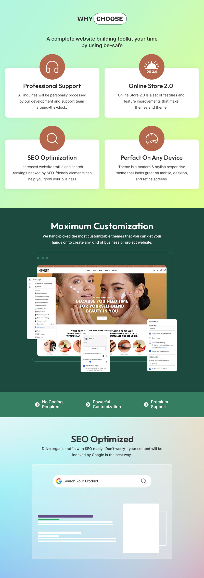 For beauty entrepreneurs, skincare experts, and makeup retailers, Midnight is the perfect blend of elegance, performance, and conversion-driven design—helping you build a standout online beauty store.