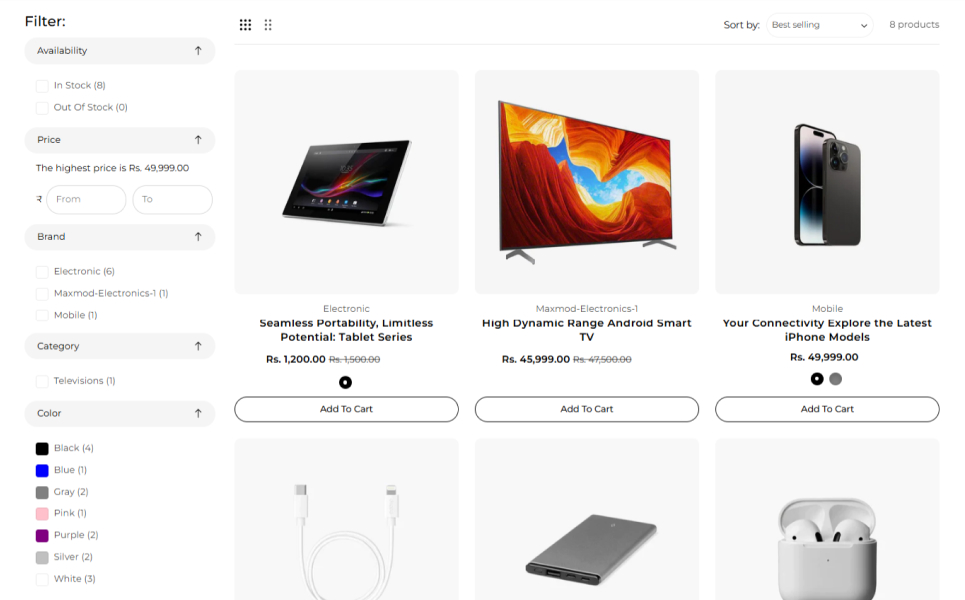 Effortless Product Discovery: Help customers find exactly what they’re looking for with powerful filtering options. From price ranges and categories to specific variants like color or size, the advanced filter system streamlines the shopping experience and encourages faster decision-making.