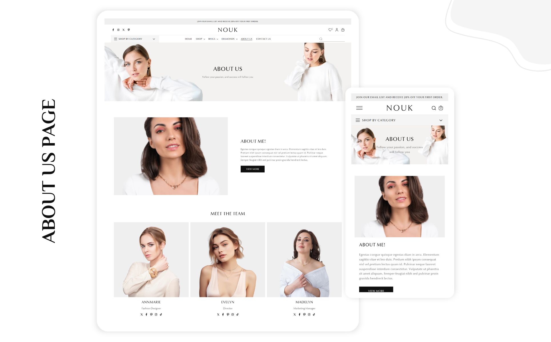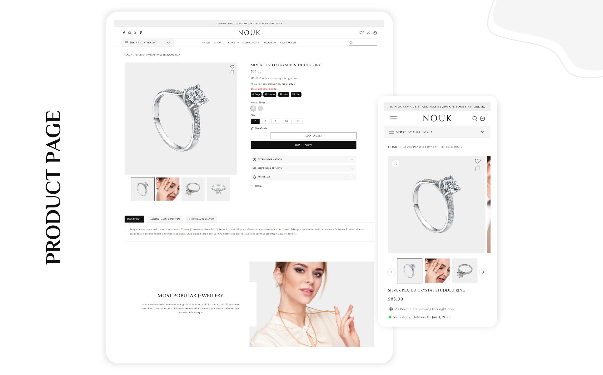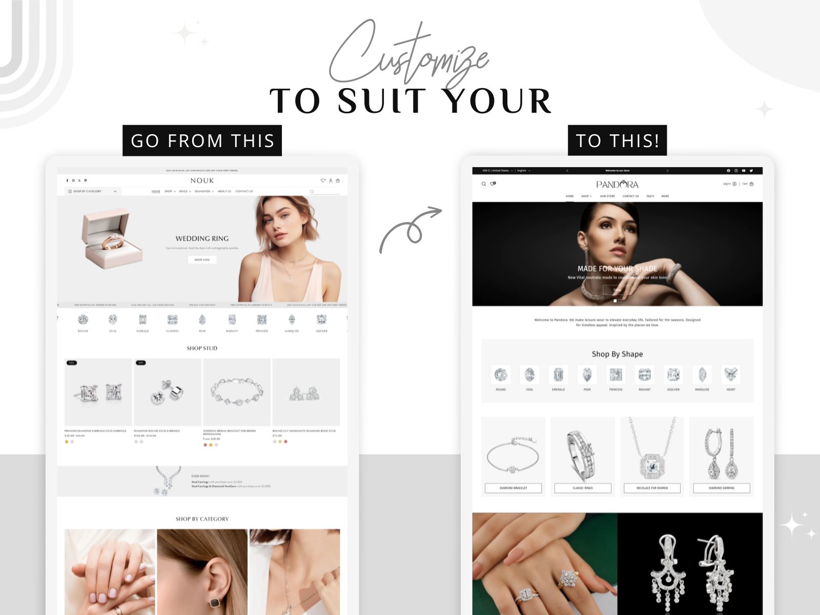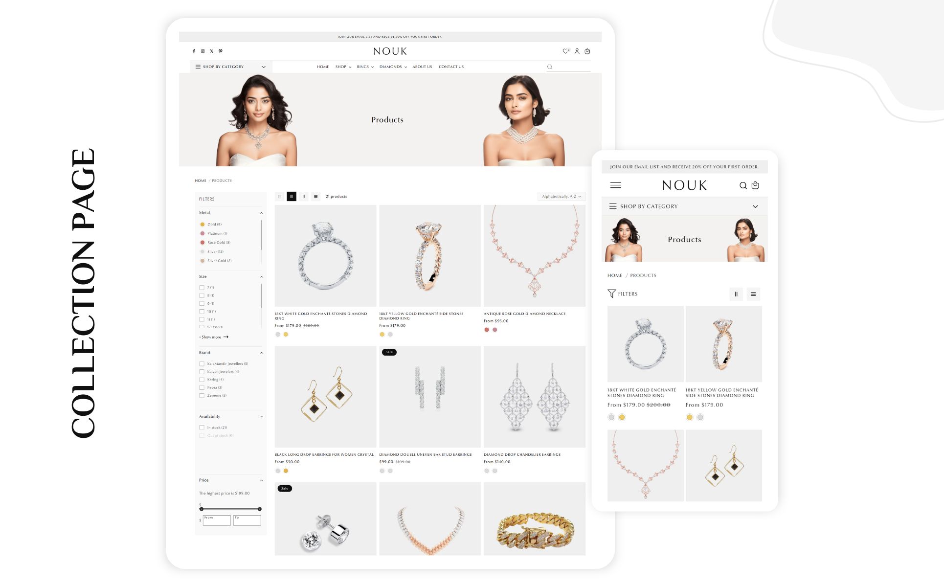 Nouk is a beautifully crafted Shopify theme designed specifically for jewelry stores. Built on Shopify OS 2.0, Nouk offers a modern, sleek, and user-friendly interface that enhances your customers' shopping experience while providing you with all the tools needed to grow your business.
