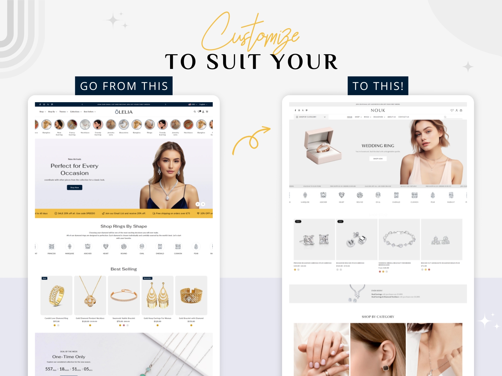 Olelia Jewelry is a meticulously crafted Shopify 2.0 theme designed to elevate online jewelry stores with its blend of elegance and functionality. Tailored for luxury and fine jewelry retailers, Olelia offers a visually stunning and user-friendly interface that enhances the shopping experience. The theme boasts a modern aesthetic with customizable layouts, allowing brands to showcase their collections in high resolution. Features like a mega menu facilitate effortless navigation, while advanced product filtering helps customers find their desired pieces quickly. Olelia is optimized for mobile devices, ensuring a seamless experience across all screen sizes. Additionally, it includes built-in tools such as countdown timers, inventory quantity bars, and social proof pop-ups to boost conversions. With its fast loading times and SEO-friendly structure, Olelia not only captivates visitors but also drives sales effectively.