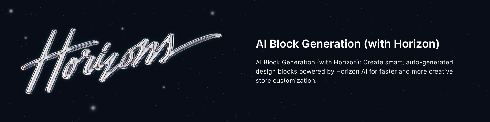 AI Block Generation (with Horizon): Create smart, auto-generated design blocks powered by Horizon AI for faster and more creative store customization.