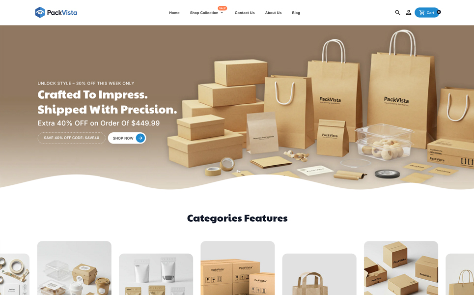 Packvista – Packaging Responsive Shopify Theme for eCommerce is a sleek and professional theme designed for packaging businesses, printing companies, and custom box manufacturers. With a clean, modern design, Packvista is perfect for showcasing packaging solutions, from eco-friendly boxes to luxury gift wraps, in a way that’s visually appealing and conversion-focused. Built on the Bootstrap framework and powered by the Redux framework, it offers a 100% responsive design that adapts beautifully to all devices and screen sizes.