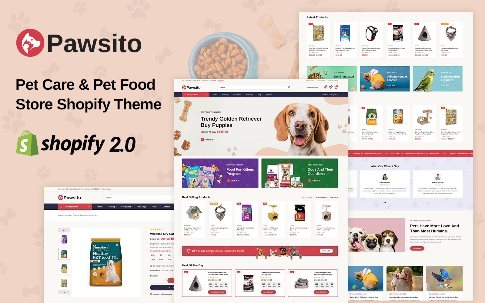 Pawsito - the epitome of sophistication and functionality in the world of online pet care and pet food retail. Pawsito is not just a theme; it's a symphony of innovation and design, meticulously crafted to elevate your Shopify store into a captivating haven for pet enthusiasts. Pawsito is built on the robust Shopify 2.0 platform, ensuring unparalleled responsiveness across all devices.