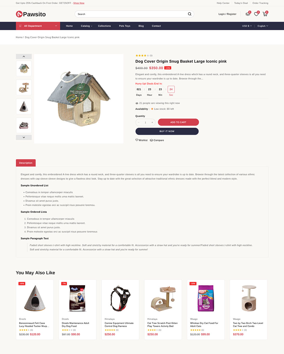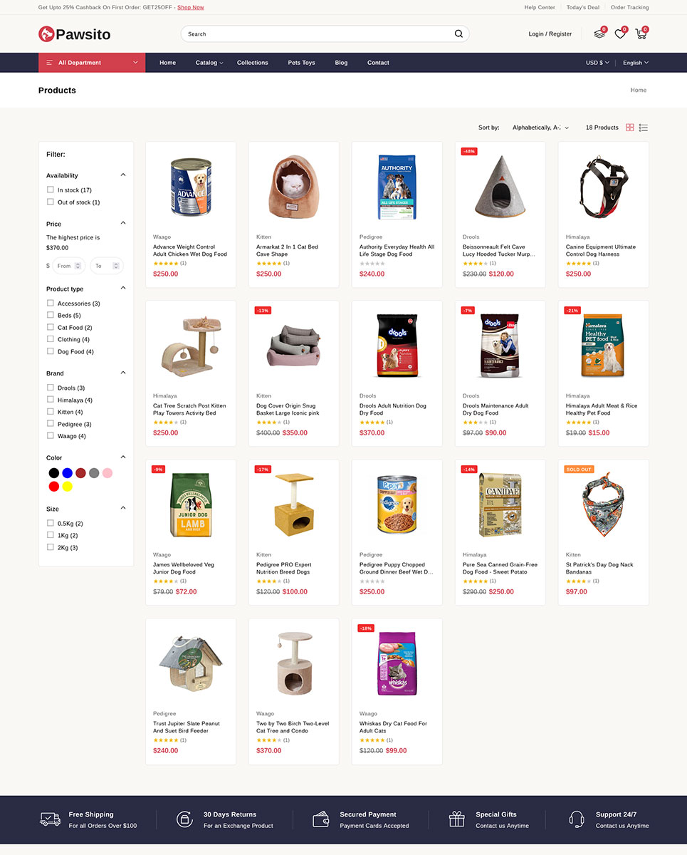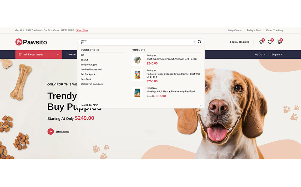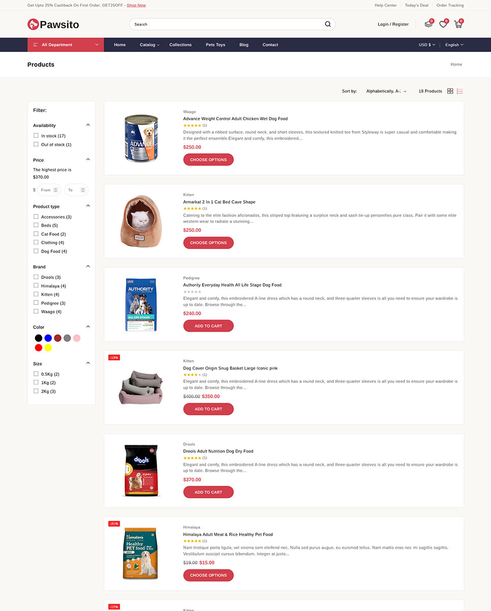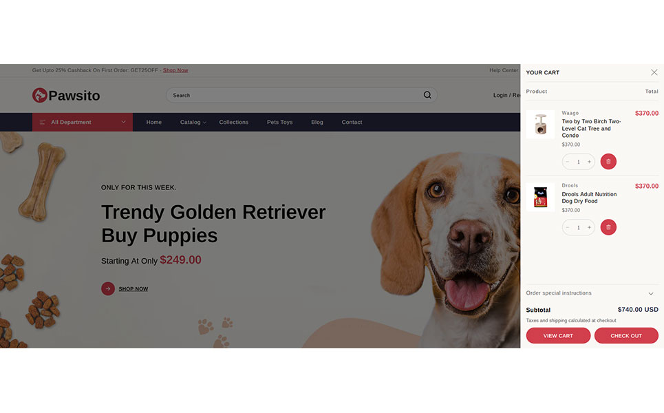 Our theme boasts a sleek and modern design that transcends the ordinary. Elevate your brand with carefully curated layouts, typography, and color schemes that convey a sense of trust, reliability, and style. Pawsito is designed with user experience in mind. Enhance navigation with strategically placed menus, intuitive filters, and a seamless browsing experience that guides your customers effortlessly through your product offerings. Pawsito provides a canvas for your offerings, allowing you to highlight product details, promotions, and customer reviews to enhance buyer confidence. With customizable color schemes, fonts, and layouts, make your online store a true reflection of your business values and aesthetic preferences.
