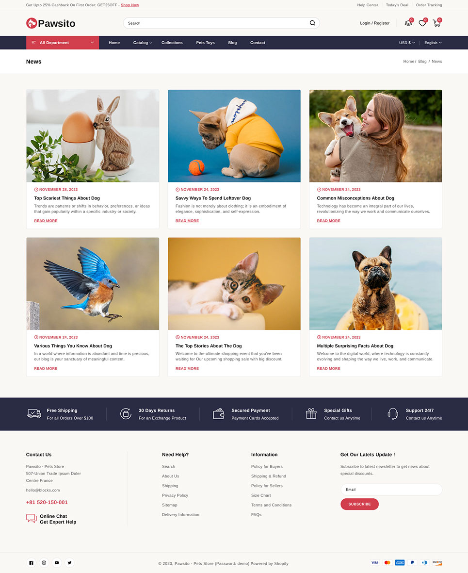 Pawsito - Pets Care & Pets Food Store Shopify 2.0 Responsive Theme Shopify Theme