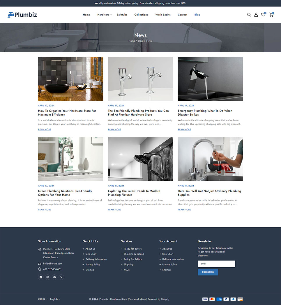 Plumbiz includes a built-in blog feature, allowing you to publish informative articles, how-to guides, industry news, and other relevant content. The theme is fully responsive, ensuring that your store looks great and functions flawlessly on any device, including desktops, laptops, tablets, and smartphones. The theme is optimized for search engines, ensuring that your products and content are easily discoverable by potential customers searching online. This helps improve your store's visibility and organic traffic over time.