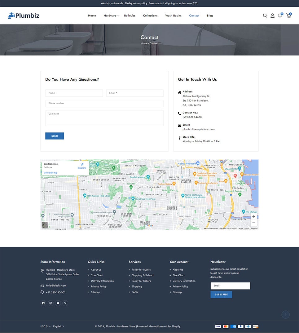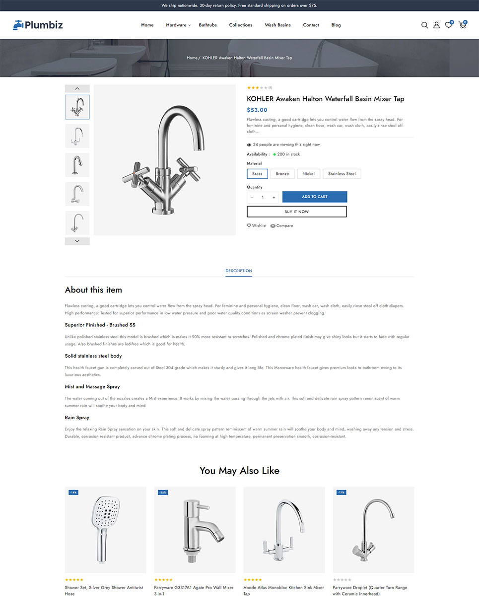The theme seamlessly integrates with popular social media platforms, enabling you to promote your products and engage with customers across various channels. Overall, the Plumbiz - Plumbing Hardware Store Shopify 2.0 Responsive Theme offers a comprehensive solution for plumbing hardware retailers looking to establish a professional and user-friendly online presence.