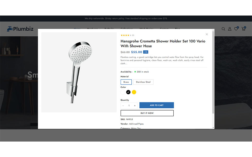 Plumbiz offers advanced filtering and sorting options, allowing customers to refine their product searches based on criteria such as price, brand, size, and more. With the Quick View feature, customers can preview product details, images, and prices without leaving the current page. Plumbiz includes a wishlist feature that allows customers to save their favorite products for future purchase or reference. Customers can zoom in on product images for a closer look, helping them make informed purchasing decisions by examining product details and quality.
