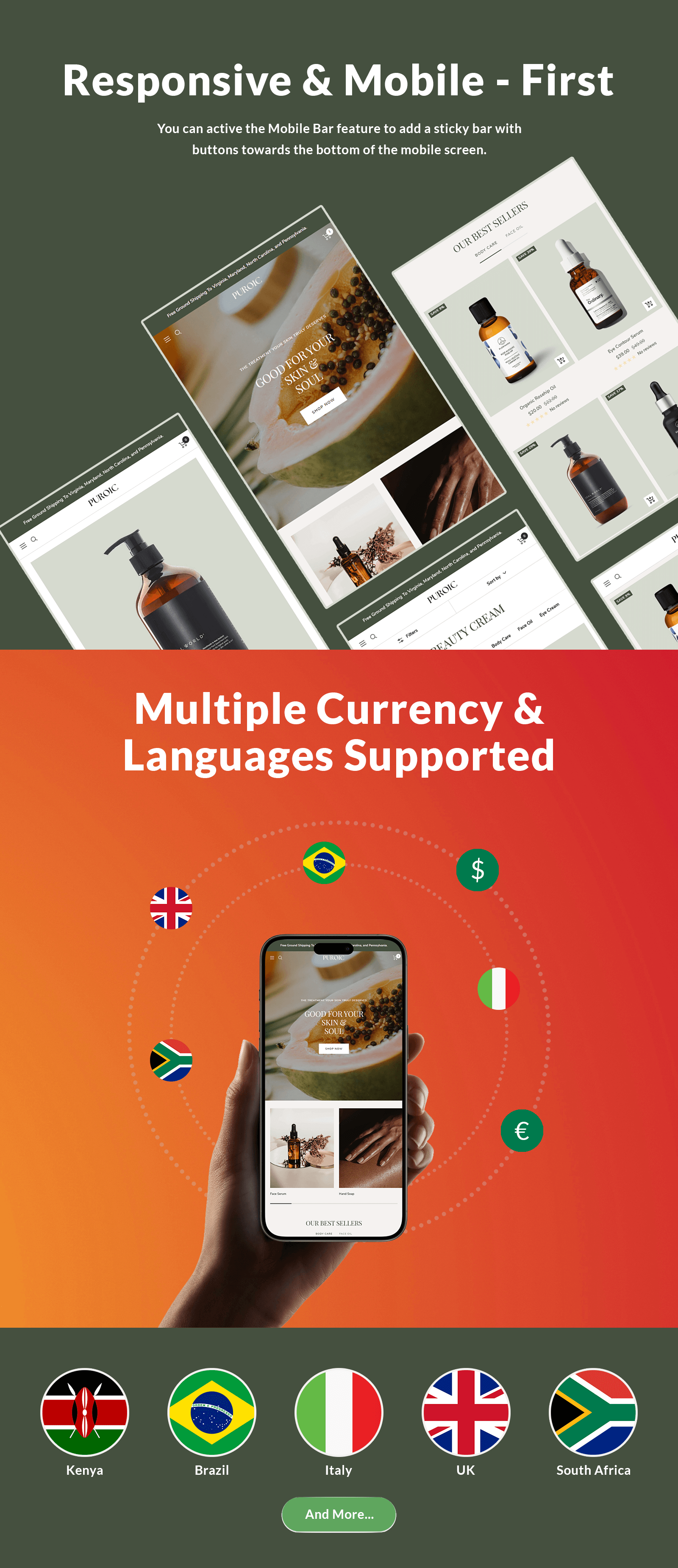 Puroic is a top-tier, multipurpose Shopify theme tailored for fashion-related businesses. Its versatile design is perfect for Cosmetics & Skin Care, fashion stores, clothing boutiques, apparel brands, accessories shops, and eCommerce stores specializing in everything from nightwear, party outfits, and bridal wear to street wear, sportswear, and swimwear. Whether you run a luxury Cosmetics & Skin Care brand, an online bikini or lingerie shop, a modern urban clothing store, or a drop shipping business, Puroic adapts seamlessly. It’s also ideal for fashion blogs, print-on-demand shops, and contemporary apparel retailers.