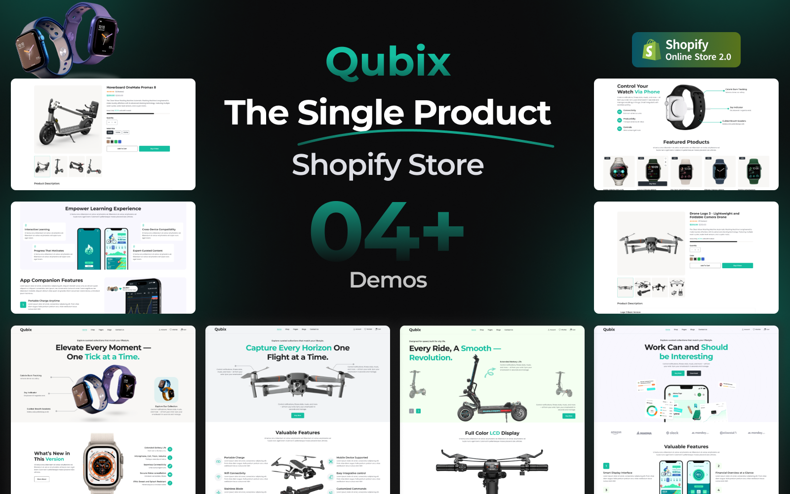 Qubix is a modern and powerful single-product multipurpose Shopify theme, thoughtfully built for entrepreneurs, brands, and startups that sell just one core product with maximum impact. With its smart, conversion-driven layout, Qubix is not just a theme; it's a growth-focused storefront crafted to present your product as the hero of your brand. Whether you’re launching a smartwatch, drone camera, electric scooter, smart watches, or any niche product, Qubix provides best layout.