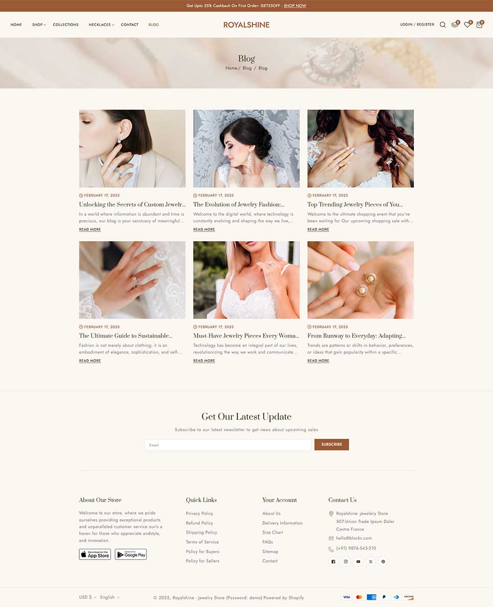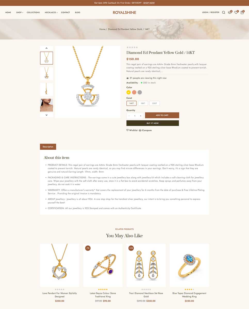 Whether you’re launching a new jewelry brand or upgrading an existing store, Royalshine delivers a perfect blend of aesthetics, performance, and modern functionality—empowering you to build a luxurious online presence with ease.