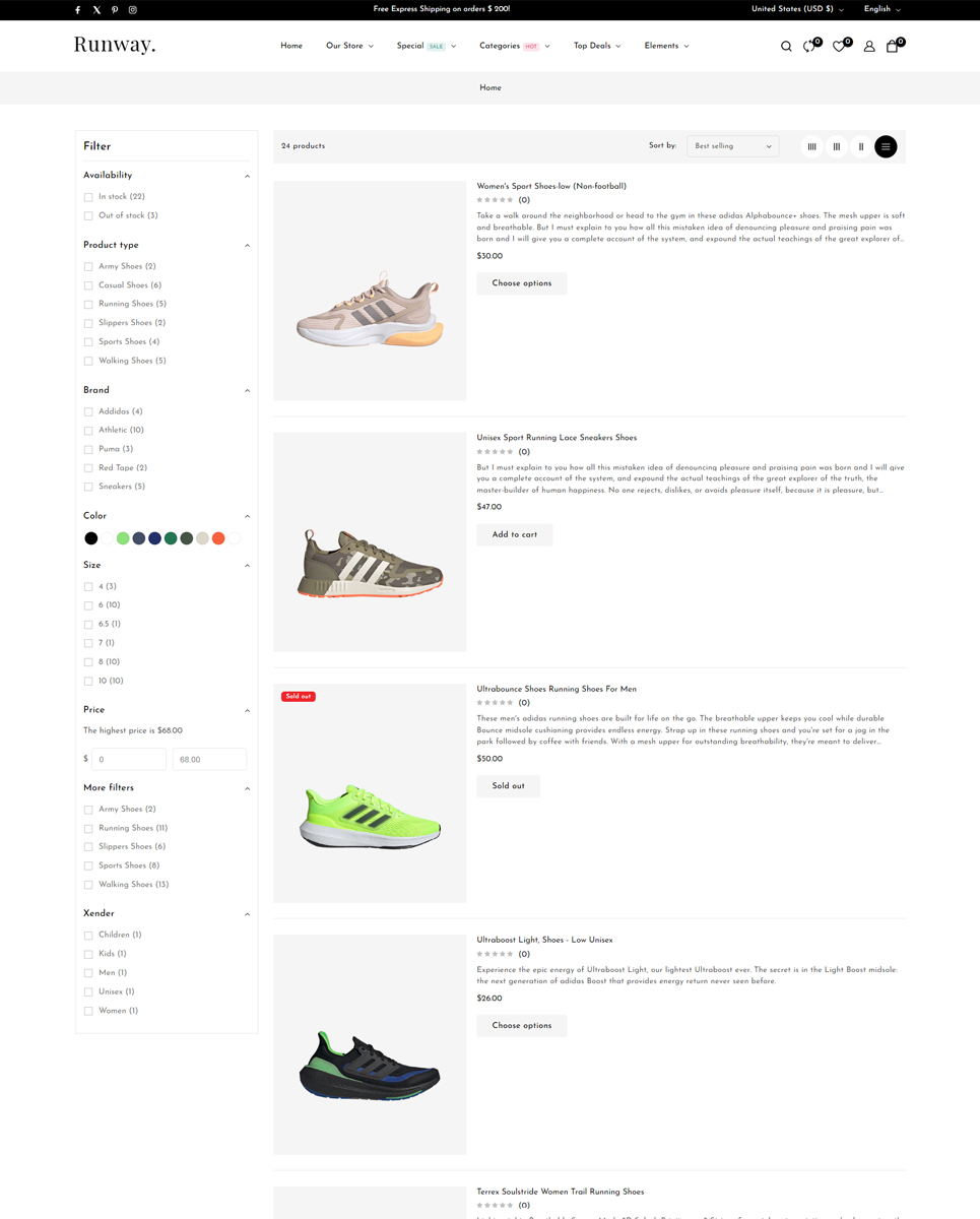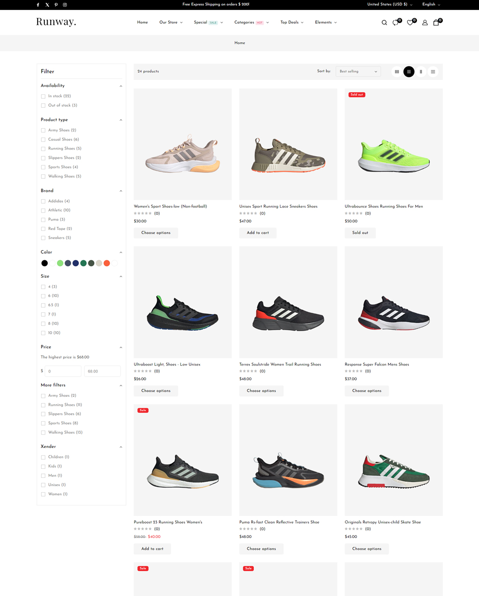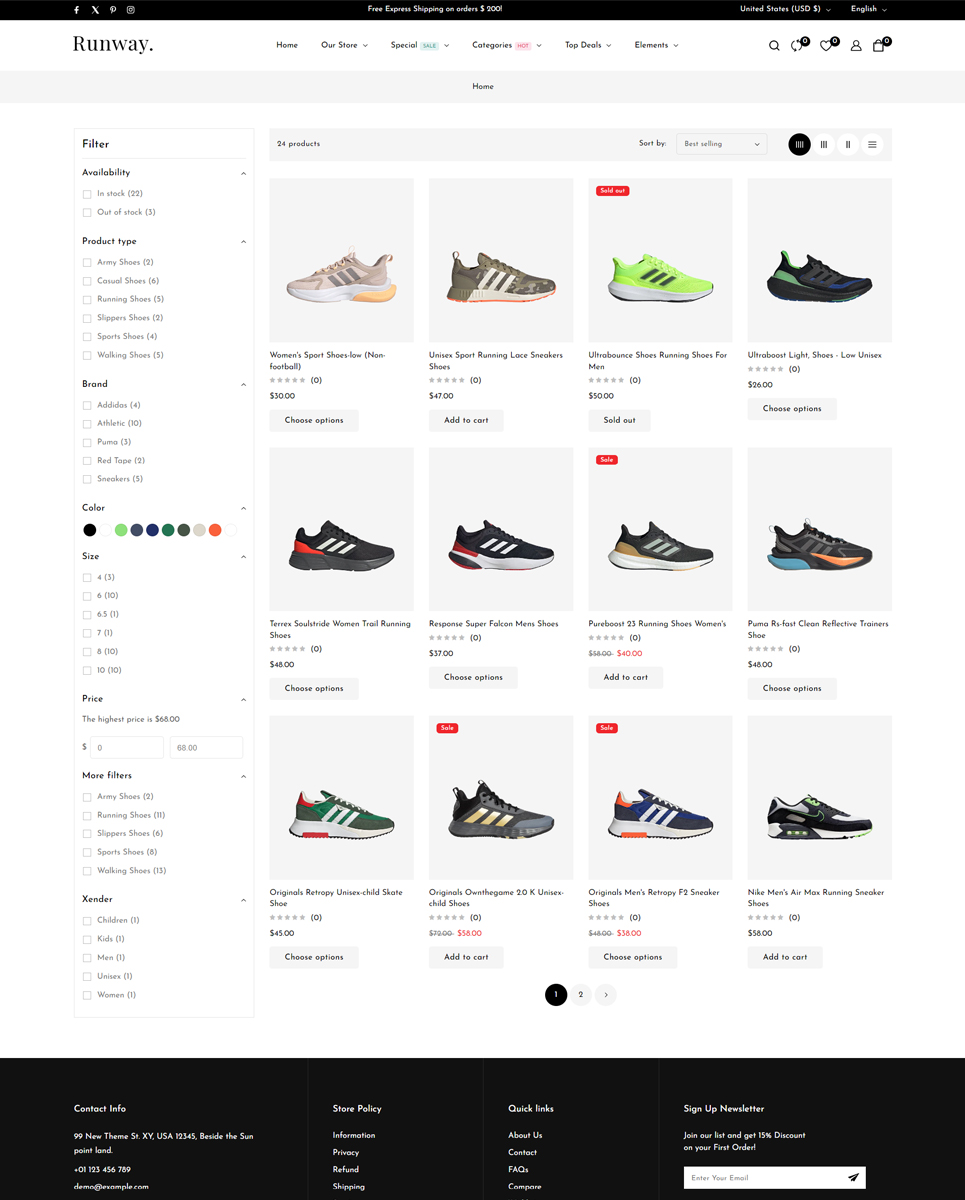 Runway - Shoes and Fashion Responsive Shopify Theme by Webdigify. Step into the future of e-commerce with Runway - Shoes and Fashion Responsive Shopify Theme by Webdigify, your ultimate solution for a stunning, high-performance online store. Tailored for Shoe Store Templates, Fashion Blog Templates, Fashion Store Templates, SEO Website Templates, and Internet Templates niches, Runway seamlessly combines aesthetic appeal with cutting-edge functionality.