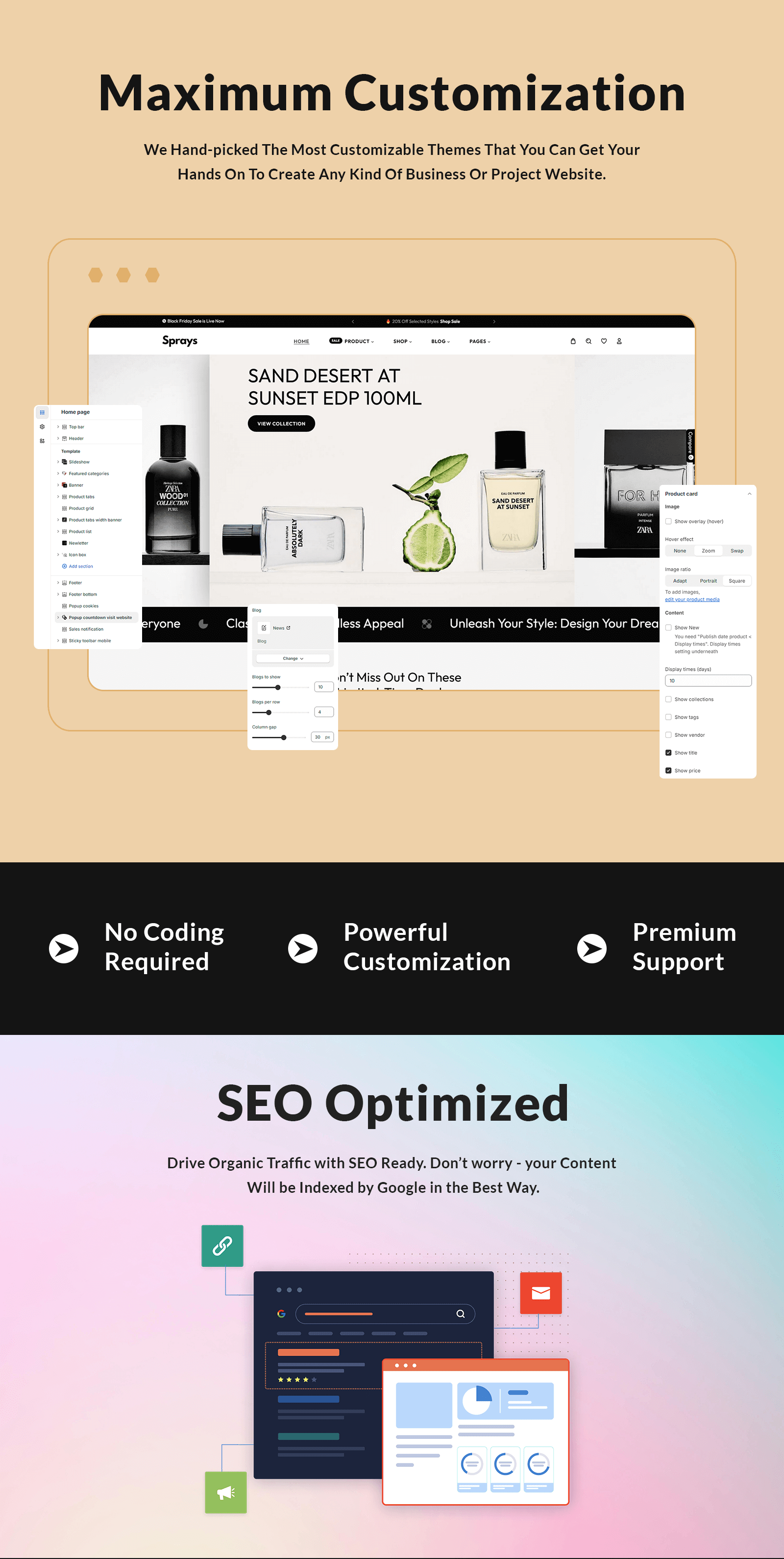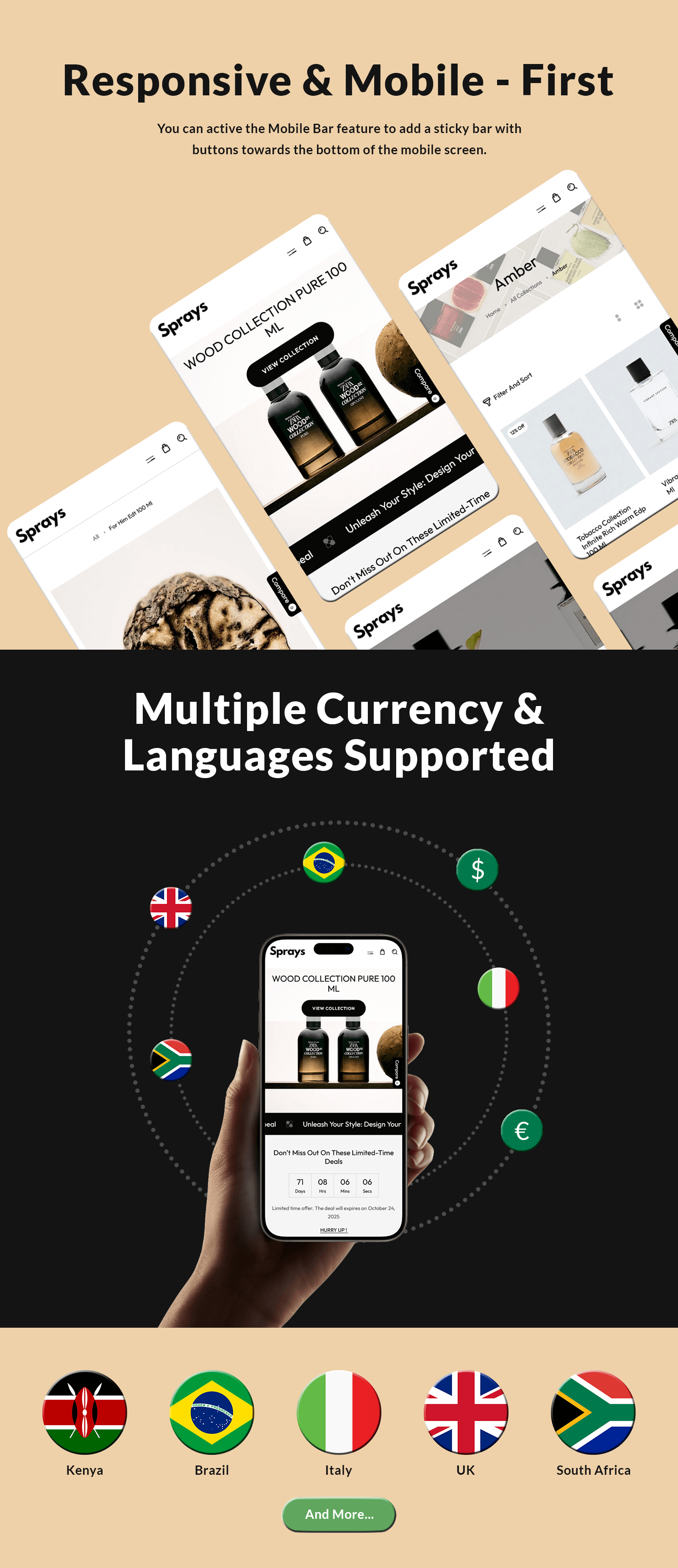 The Sprays – Fragrances & Perfumes Premium Shopify OS 2.0 theme is designed specifically for online stores offering luxury fragrances and perfumes. It is highly customizable, user-friendly, and fully responsive, ensuring a seamless shopping experience across all devices.
