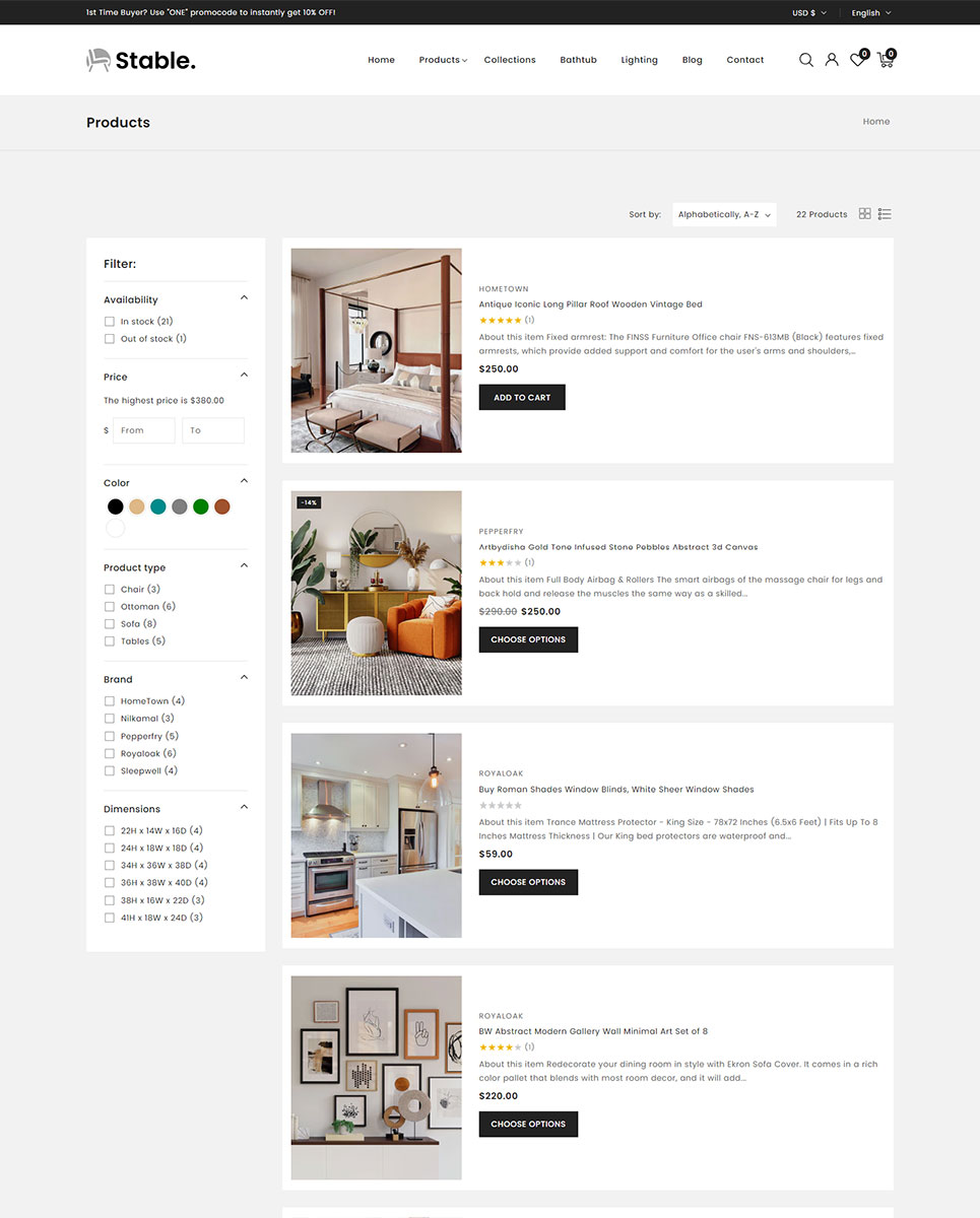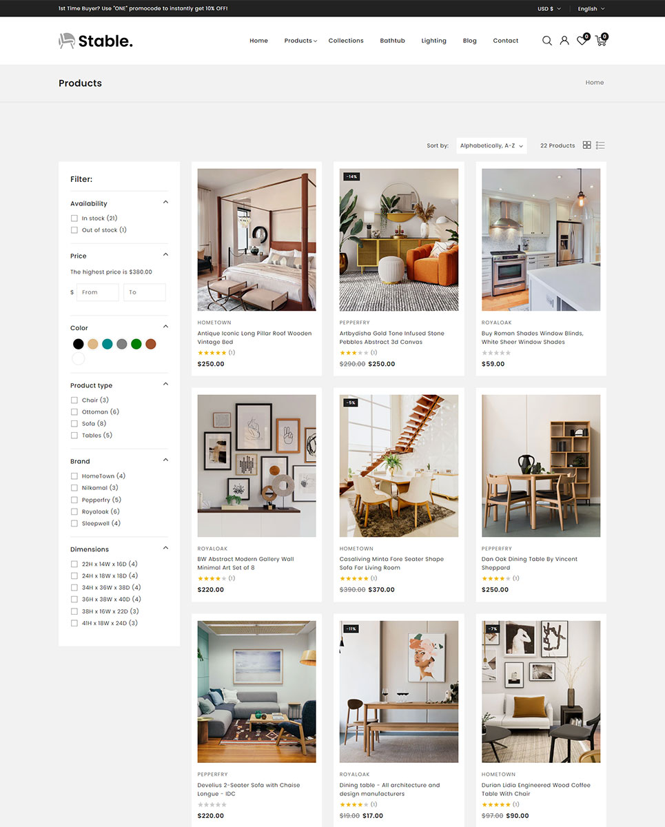 With its sophisticated design, powerful eCommerce features, and seamless user experience, Stable is the ultimate Shopify 2.0 theme for anyone looking to create a professional and high-converting home decor and furniture store.