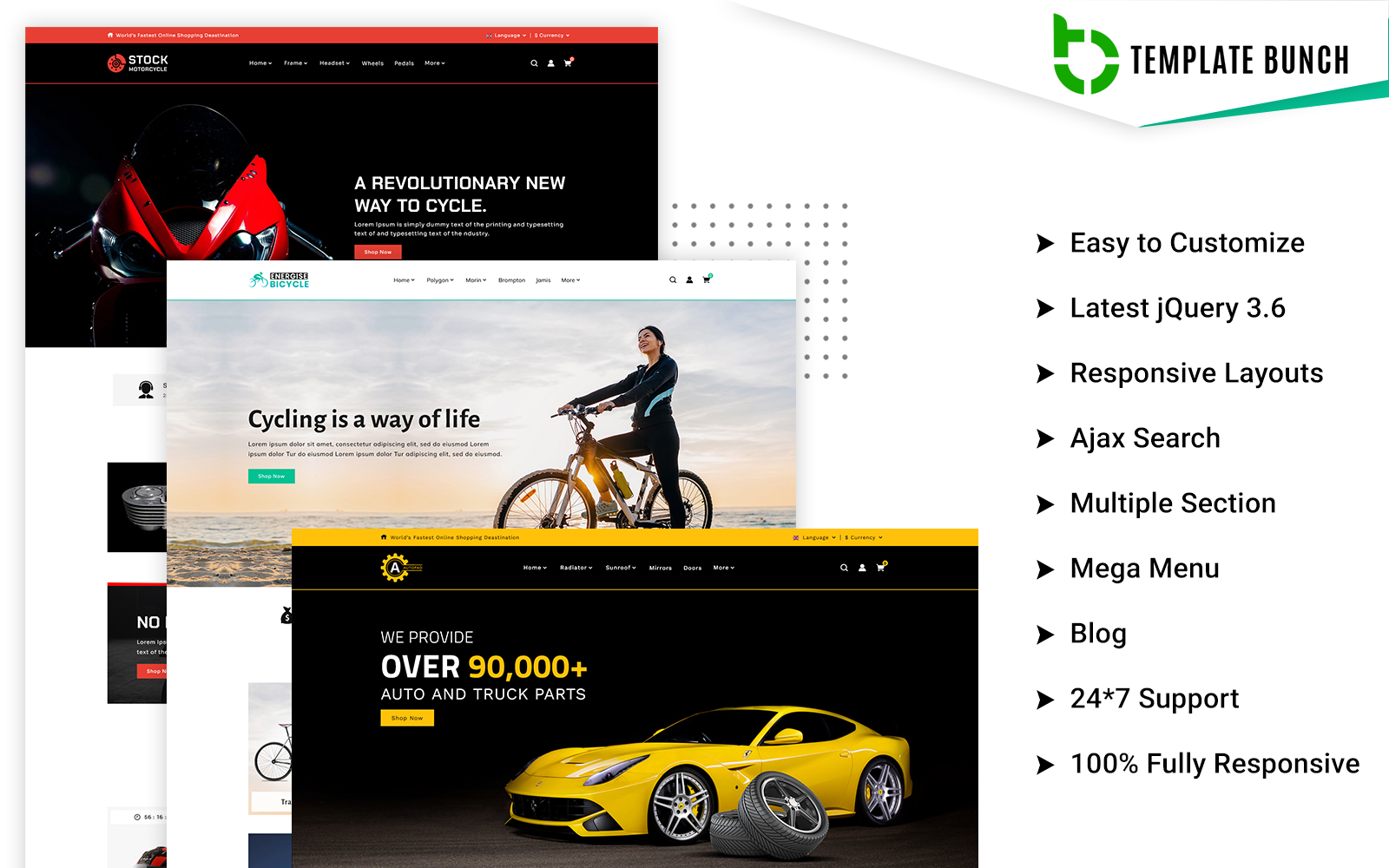 StockAuto - Autoparts and Motorcycle Parts with Bicycle - Responsive Shopify Theme for eCommerce