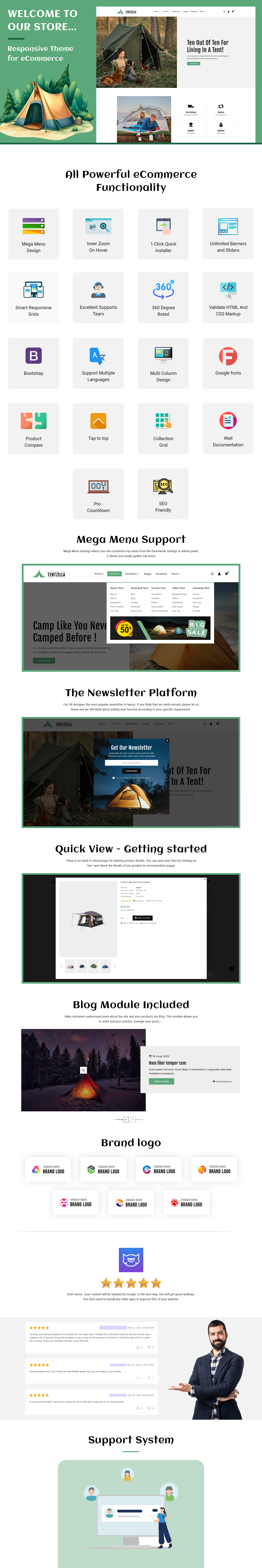 Gear up your online store with Tent Zilla, a powerful and versatile Shopify theme tailored for outdoor gear, camping supplies, and adventure stores. Designed for ultimate functionality and aesthetic appeal, this theme provides everything you need to create an engaging and professional eCommerce experience.