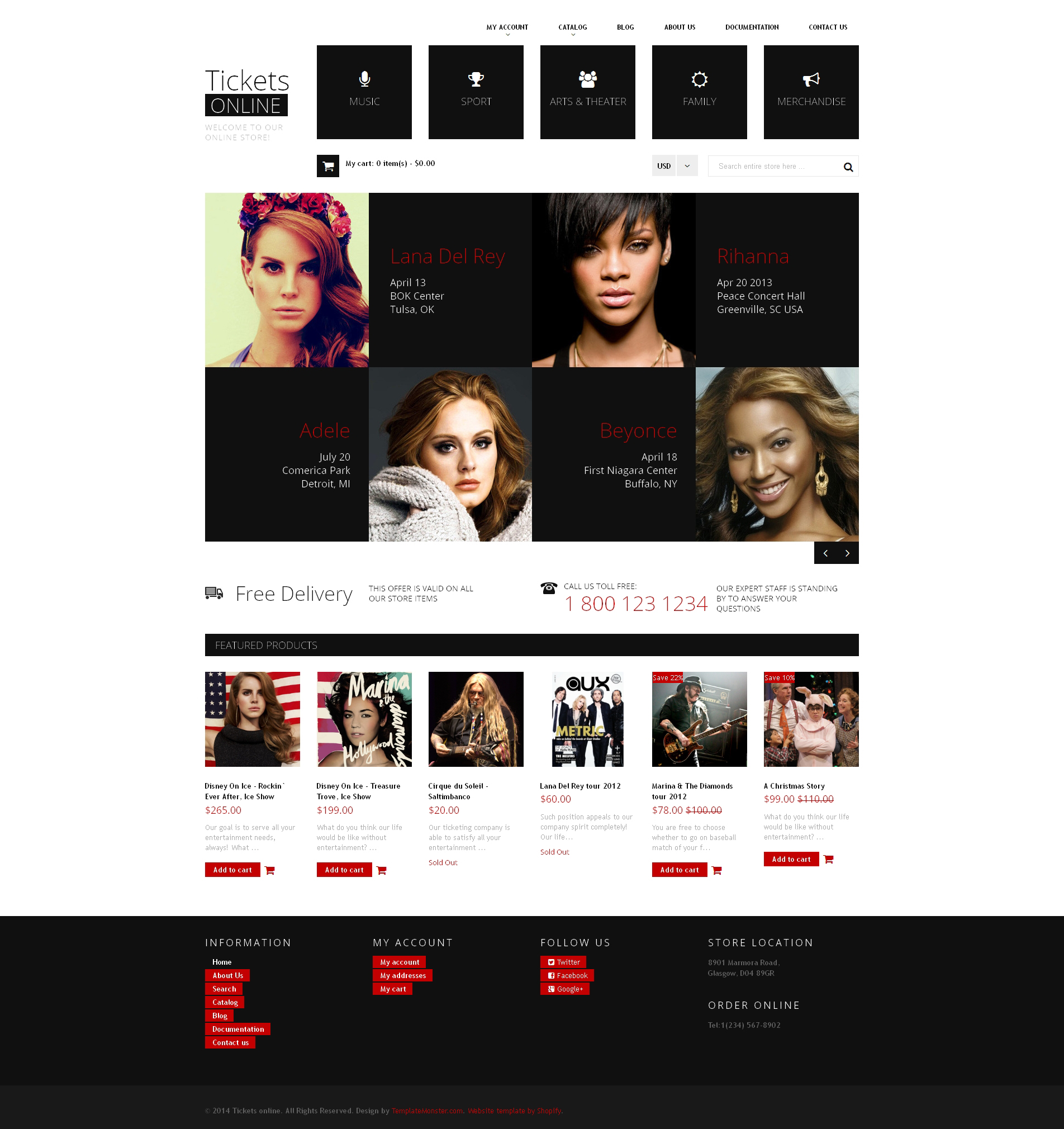 This is a Bootstrap Music Tickets Shopify ecommerce template