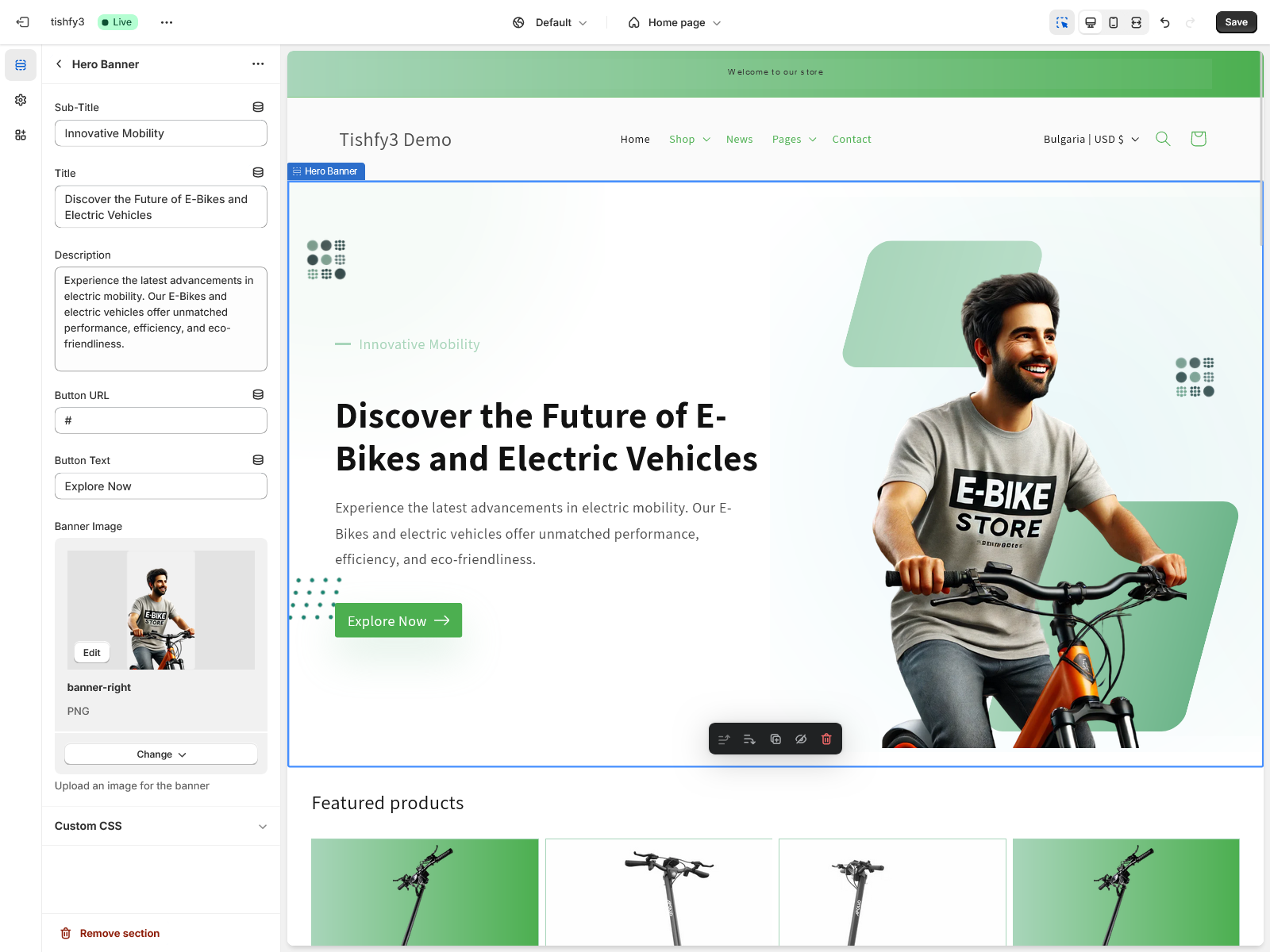 The first impression matters. With Tishfy3, you can captivate your audience right from the homepage. The customizable homepage banner allows you to showcase high-resolution images of your top-selling E-Bikes or Electric Vehicles, along with compelling calls to action. Whether you want to announce a new product launch, special promotions, or seasonal sales, the homepage banner is the perfect canvas to highlight your key messages.