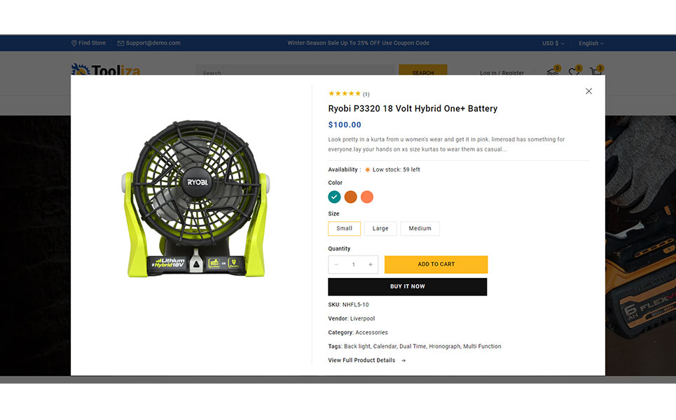 Tooliza was created with the user experience in mind and has fantastic features like Quickview Product, wishlist and comparison, Ajax product search and filter, Count Down Timer, Side Category Menu, Category Image Slider, Theme Colour & Typography Options, responsive layout and much more. Without any coding experience, creating a website is quick and simple.