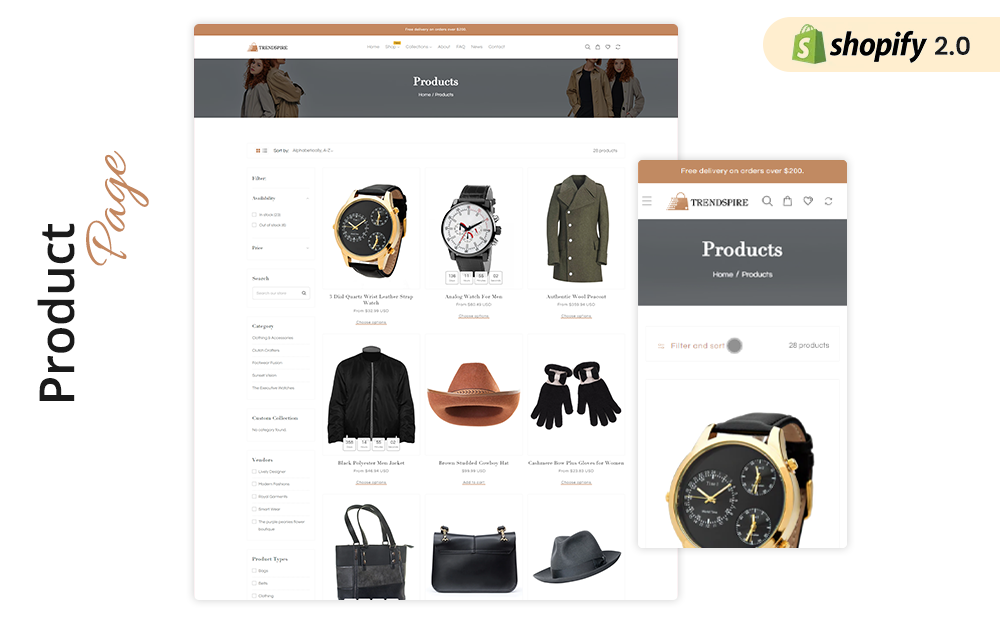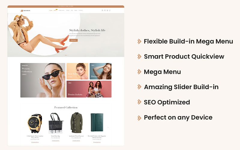 TrendSpire Shopify theme, especially designed for modern fashion stores of clothing apparels and trending style accessories.