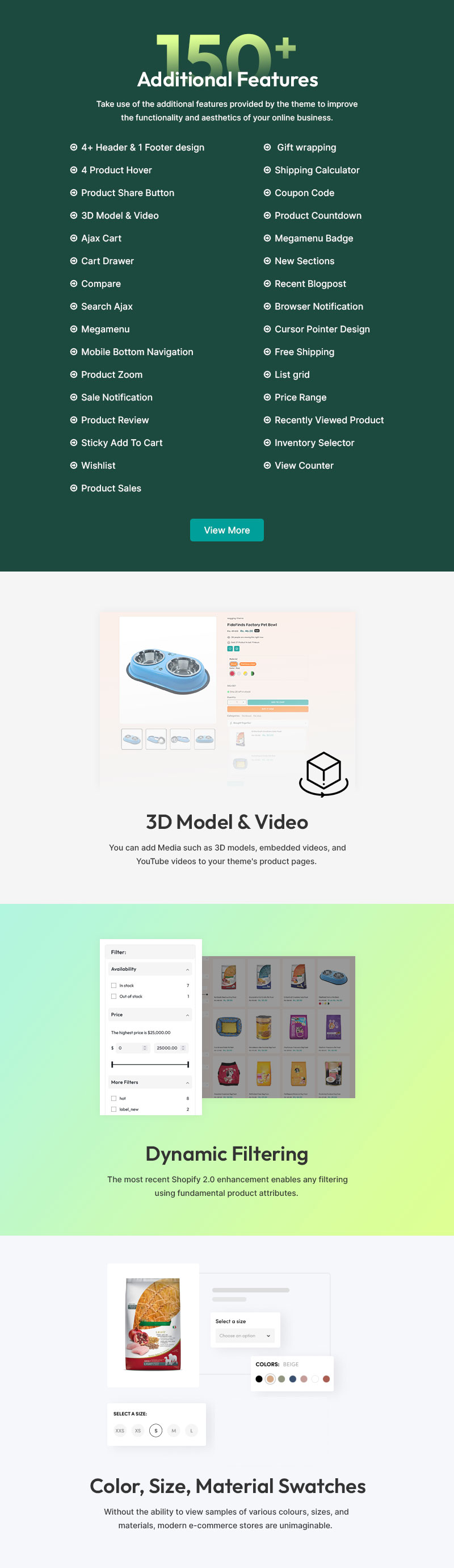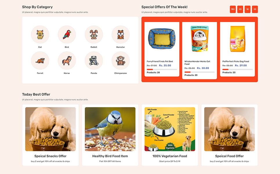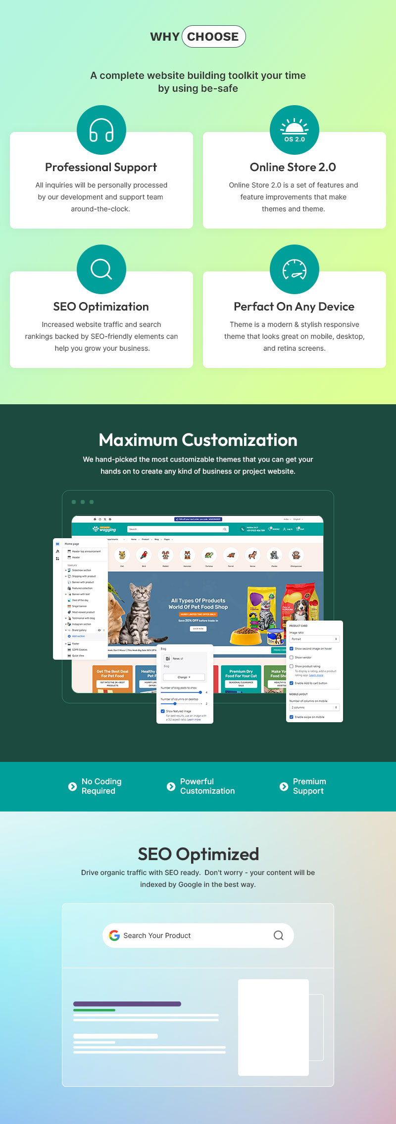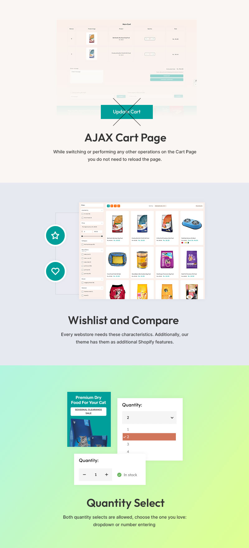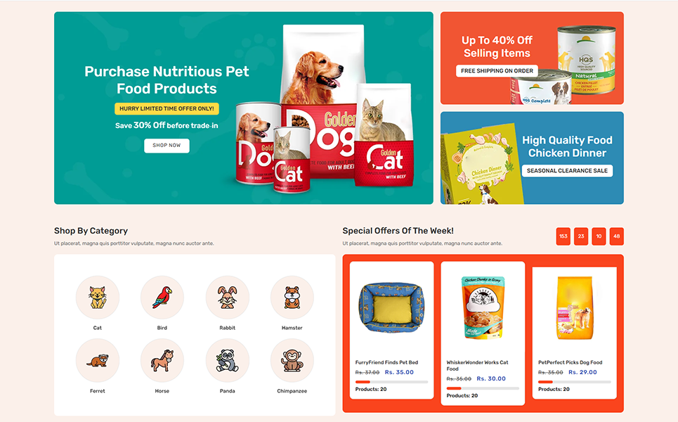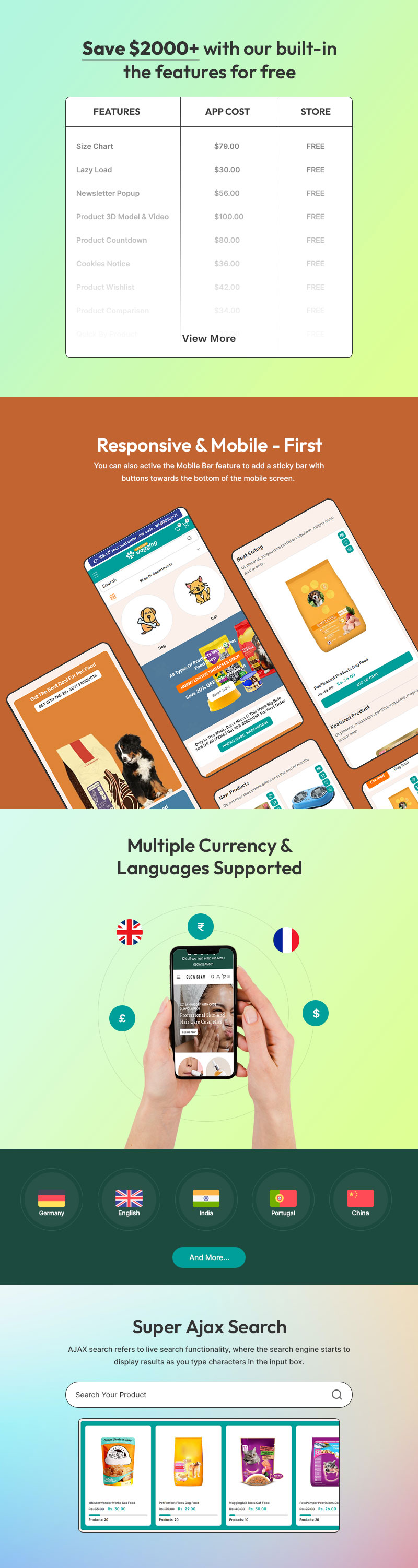 Customization is effortless with Wagging PetShop’s user-friendly drag-and-drop builder, allowing you to fine-tune colors, typography, and layouts to reflect your brand’s unique style. The smart filtering system enables customers to browse by pet type (dogs, cats, birds, reptiles, small animals), dietary needs (grain-free, high-protein, organic), age group, and product categories, ensuring a stress-free shopping journey. Each product page is designed to maximize engagement and sales, featuring detailed nutritional breakdowns, feeding recommendations, ingredient highlights, and pet parent reviews.