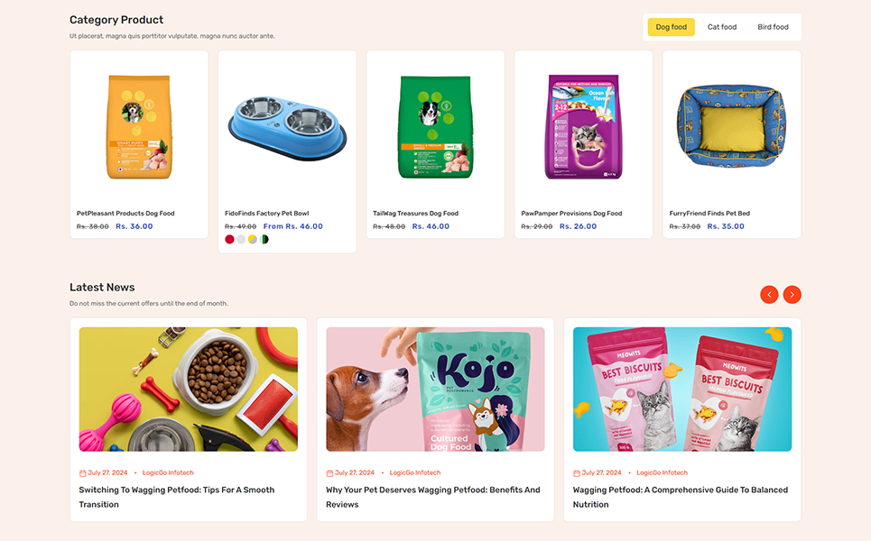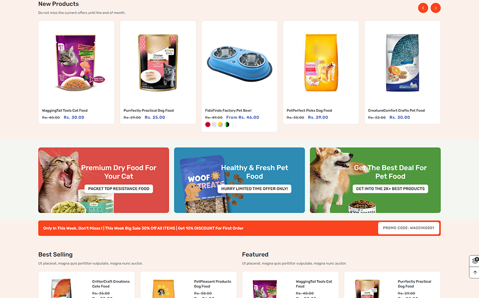 To drive loyalty and sales, Wagging PetShop integrates dynamic marketing tools such as auto-renewing pet food subscriptions, exclusive member discounts, seasonal promotions, and bundled product deals. Built-in social media and content marketing features allow you to share training tips, grooming tutorials, and customer pet spotlights on Instagram, TikTok, and Facebook, fostering a community of engaged pet lovers. With multi-currency and multi-language support, your pet store can cater to customers worldwide.