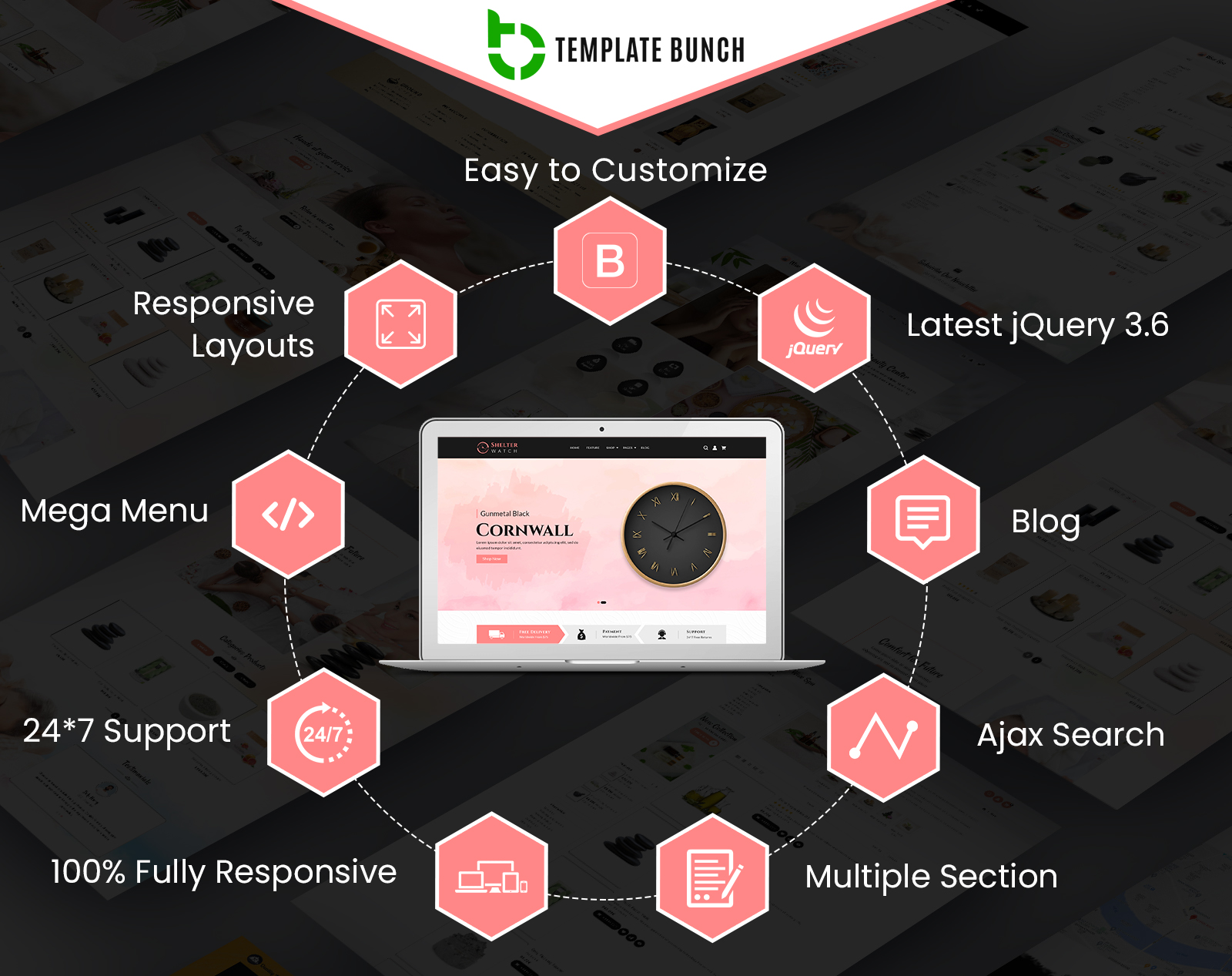 The theme's minimal and clean layout keeps the focus on your products, while its easy-to-customize structure allows you to adjust everything to meet your needs. All files come well-documented, and free updates are included to ensure that your store stays up-to-date with the latest features.
