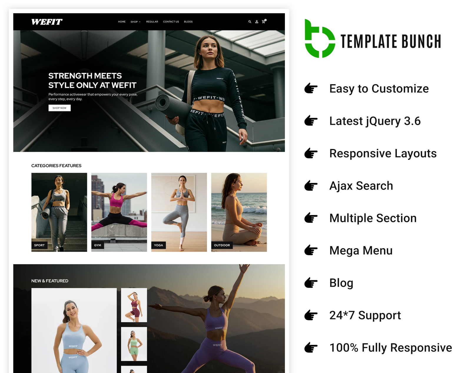 Wefit - Gym Clothes Responsive Shopify Theme for eCommerce is the ultimate choice for fitness enthusiasts, sportswear brands, and active lifestyle stores. Designed with a bold and energetic aesthetic, this theme delivers a high-performance shopping experience that matches the dynamic spirit of your products. Its fully responsive design ensures your gym clothing store looks flawless on desktops, tablets, and smartphones, allowing customers to shop anytime, anywhere with ease.