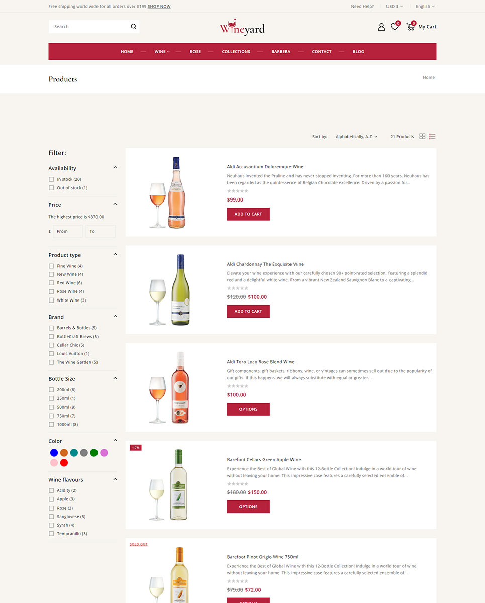 Wineyard is fully responsive and retina-ready, ensuring your store looks stunning and functions perfectly on all devices — from desktops to mobile phones. Optimized for speed and SEO, it helps improve your search engine rankings and provides a seamless user experience. The theme also includes support for multi-language and multi-currency, making it ideal for international wine retailers.