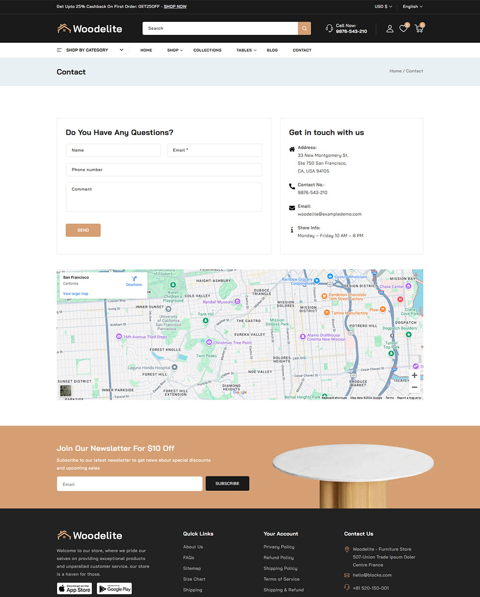 - Google Map Integration on Contact Page