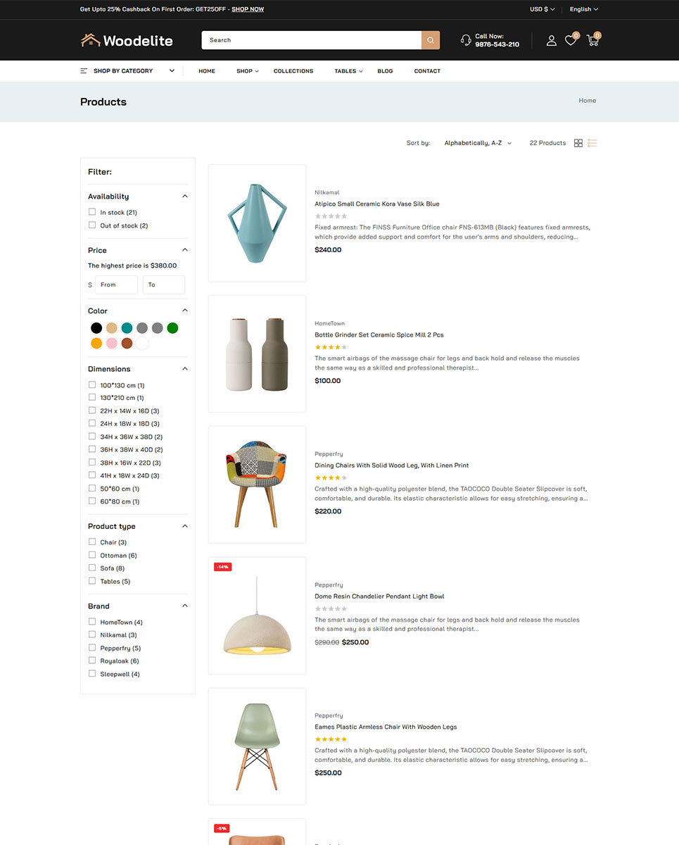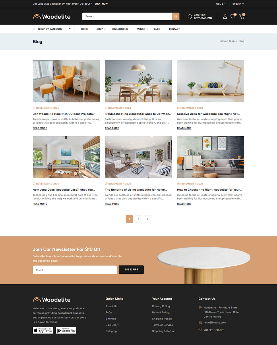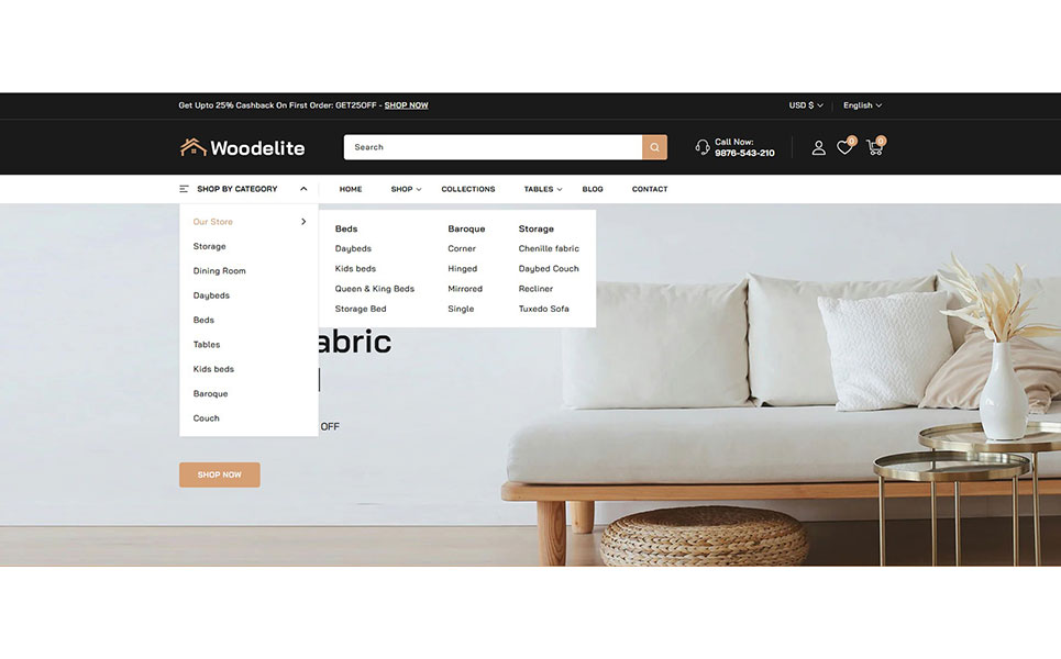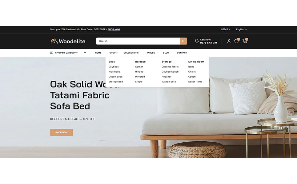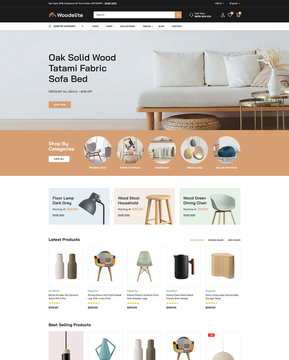 Elevate your online furniture and interior decor business with Woodelite, a beautifully designed, feature-rich Shopify 2.0 theme crafted specifically for modern furniture stores, home décor brands, and interior design boutiques. Built with the latest Shopify 2.0 framework, Woodelite brings powerful customization capabilities, lightning-fast performance, and a seamless shopping experience across all devices.