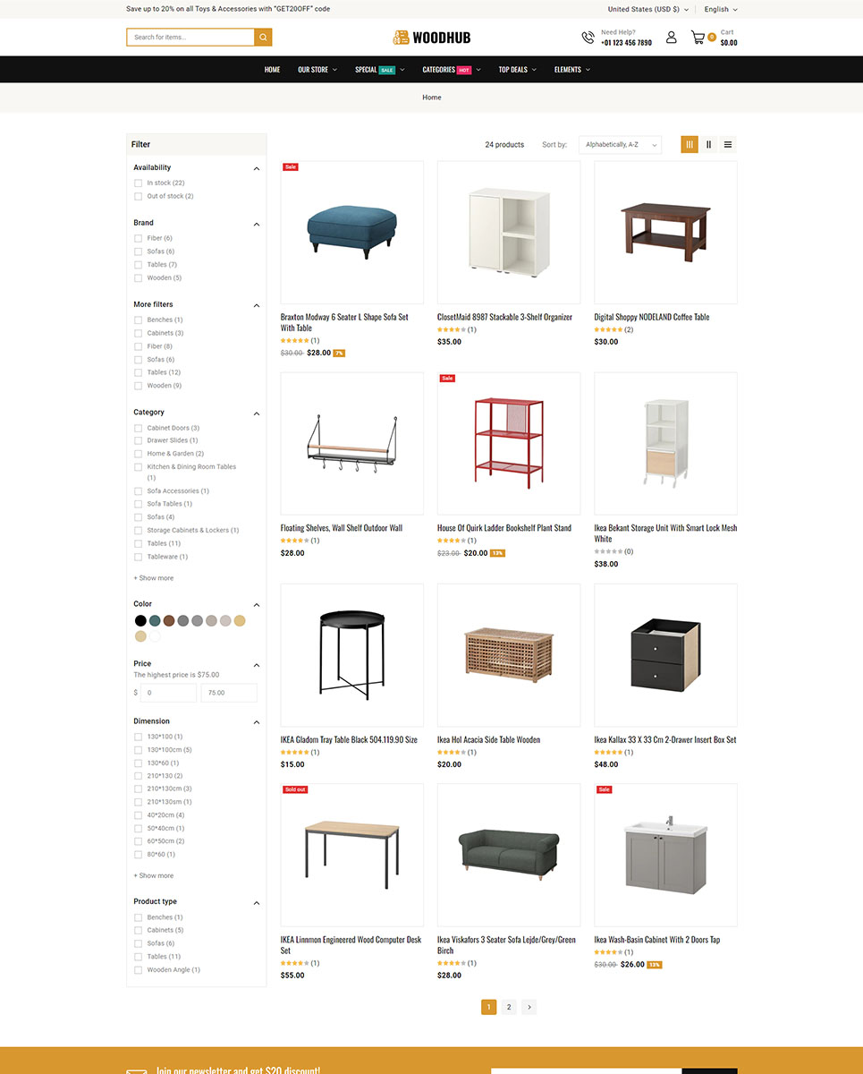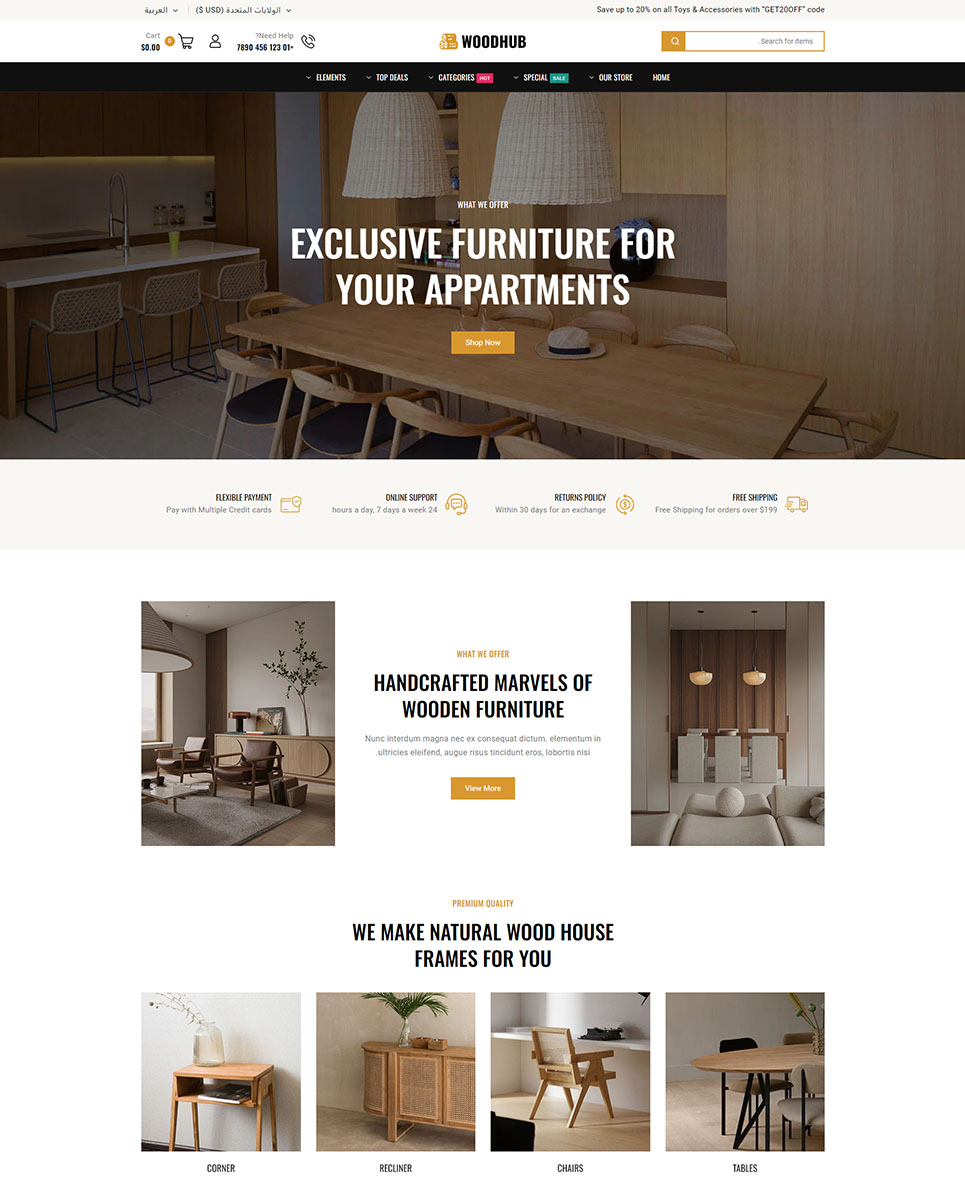 WoodHub - Wood and Furniture Store & Home Decor Shopify 2.0 Theme