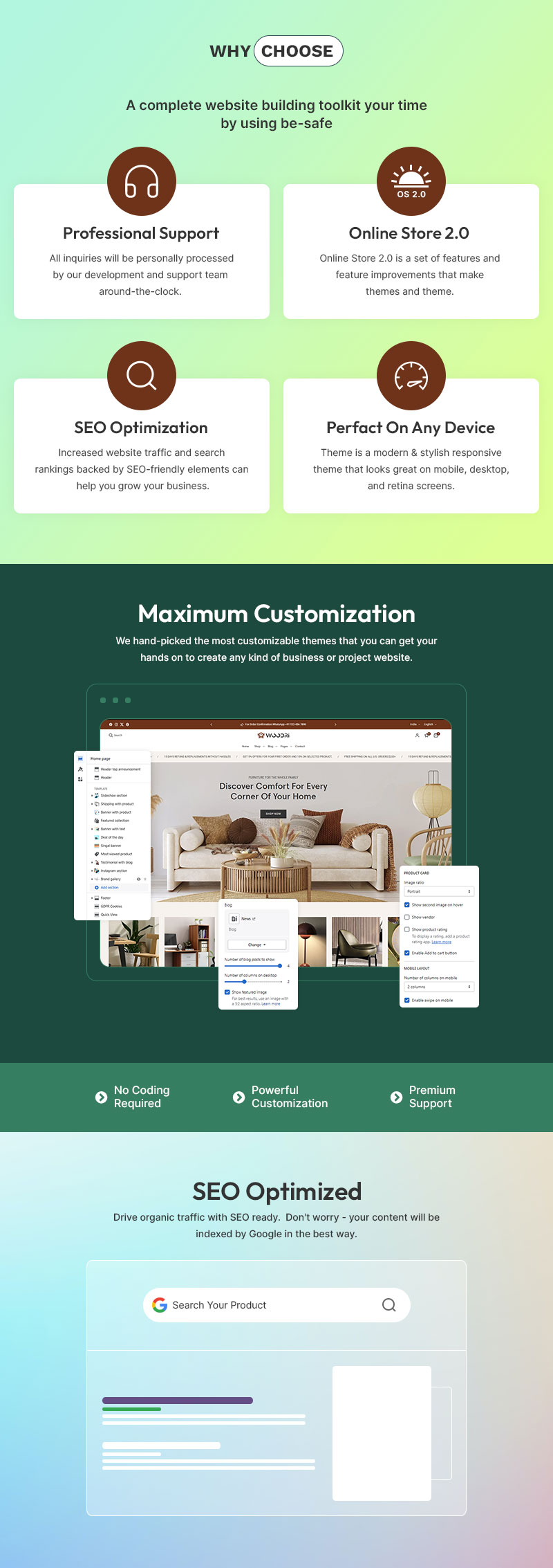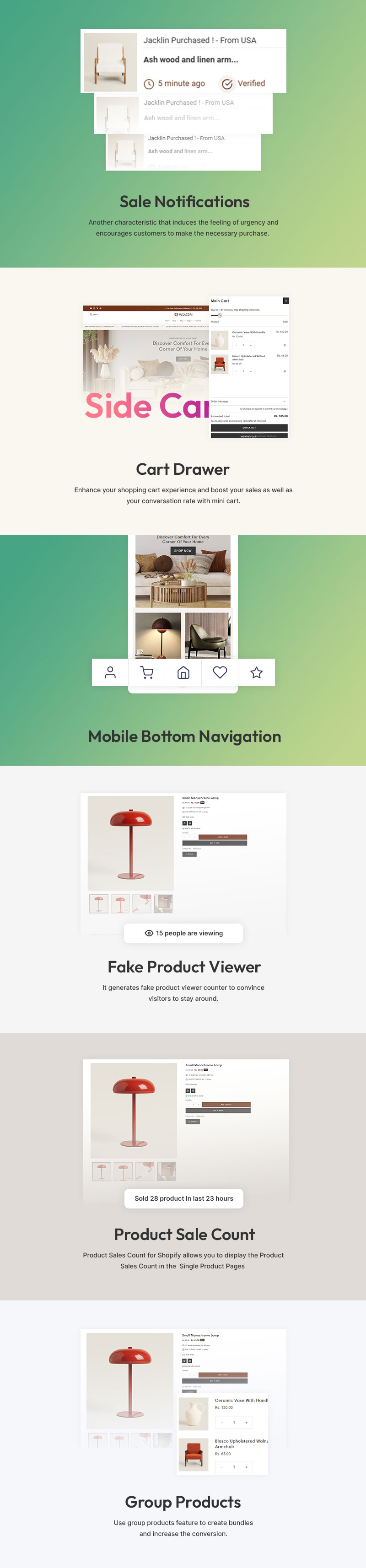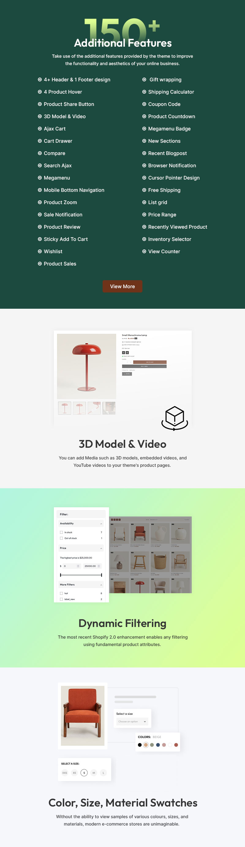 Woodri’s intuitive drag-and-drop editor makes customization effortless, allowing you to refine color palettes, typography, and layouts to harmonize with your brand’s identity. Its intelligent filtering system enhances user experience, enabling customers to browse effortlessly by material, style, dimensions, lighting features, and room suitability. Each product page is thoughtfully designed to inspire and convert, featuring in-depth product insights, customer testimonials, high-resolution imagery, and décor inspiration sections.