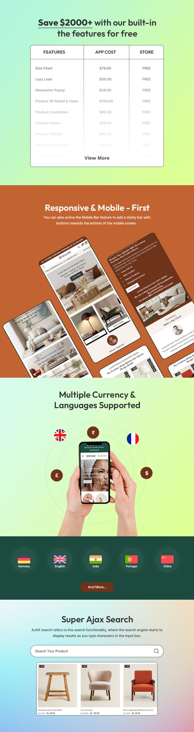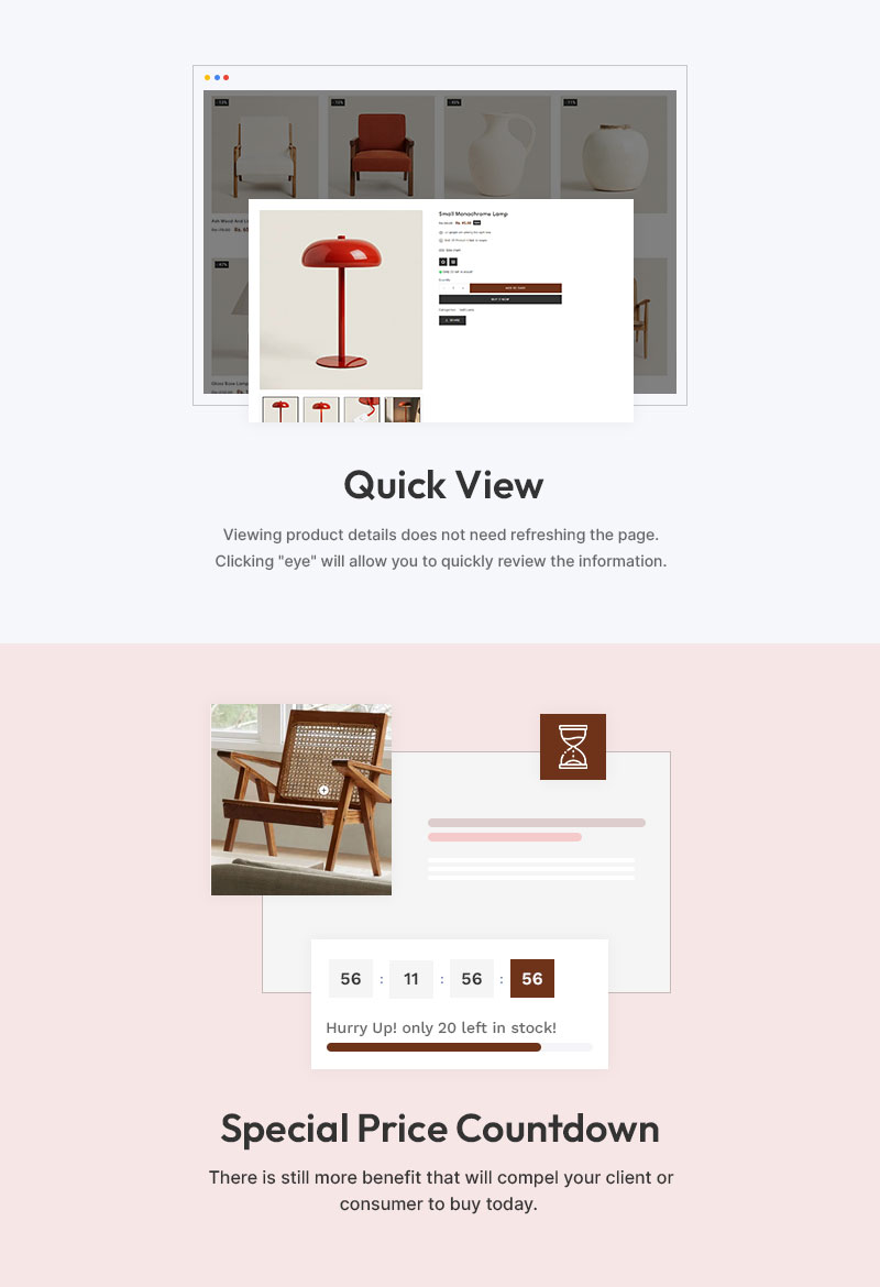 To maximize engagement and sales, Woodri integrates strategic marketing tools, including exclusive bundle offers, limited-time promotions, curated seasonal collections, and featured bestsellers. Seamless social media integration allows you to showcase interior styling tips, furniture maintenance guides, and real-home inspirations on Instagram, Pinterest, and Facebook, strengthening brand credibility and customer loyalty. With multi-currency and multi-language support, your store can captivate a global audience with ease.