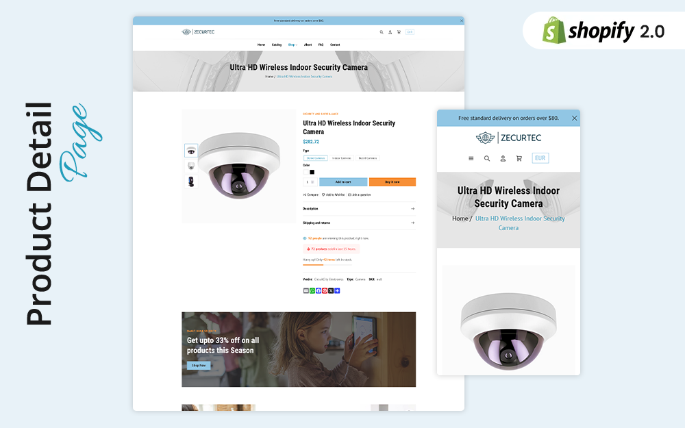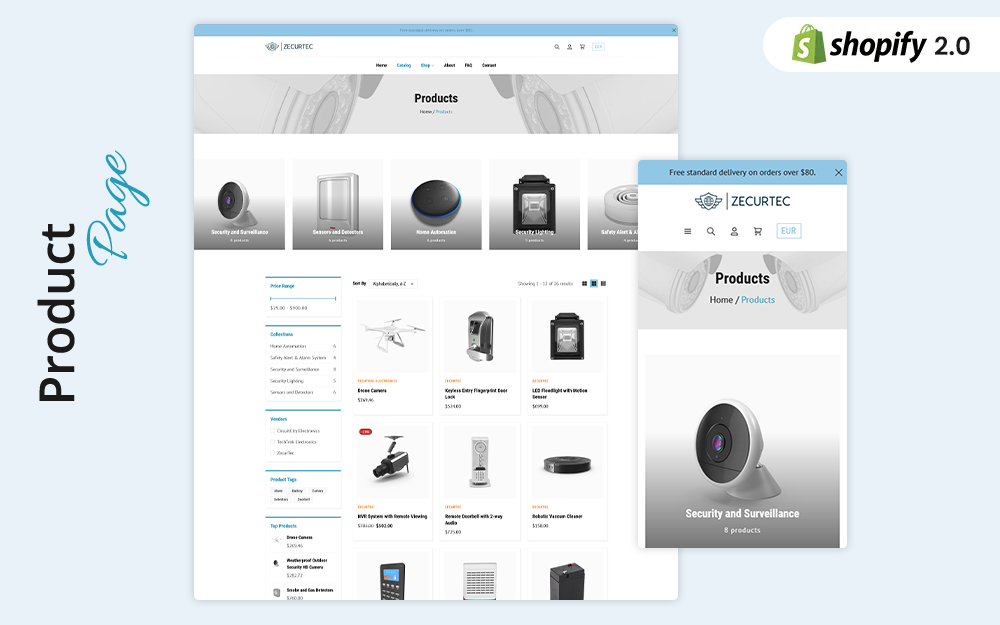 ZecurTec Home Security Shopify theme is designed specifically for eCommerce online stores that sells smart home and security products to the customers most likely house-owners, tech enthusiasts, and security-conscious individuals looking for products that reflects the priorities from convenience, safety, and cutting-edge technology.
